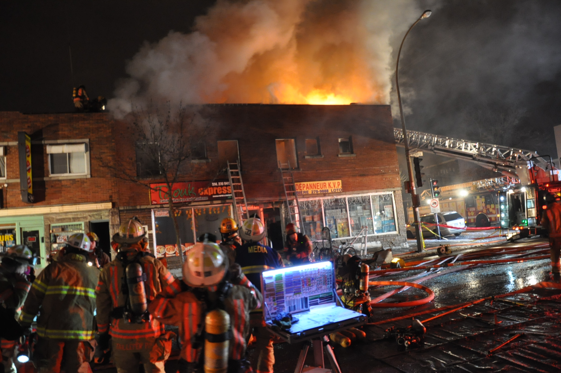 Vers 17h, le Service incendie de Montréal (SIM) a indiqué que le feu avait pris au deuxième étage d’un bâtiment où se trouvaient sept appartements, situés au dessus d’un dépanneur et d’un restaurant.