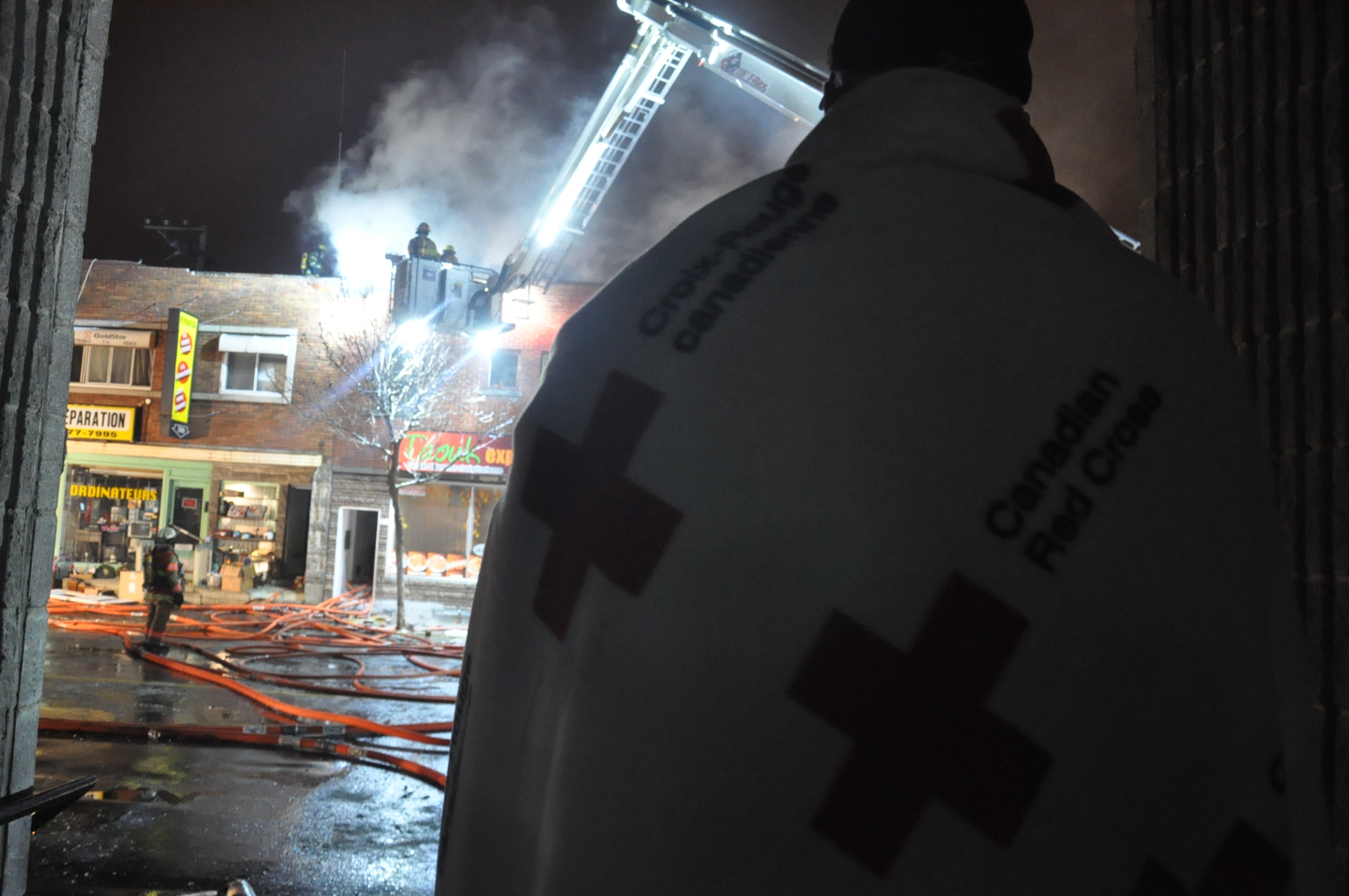 Vers 17h, le Service incendie de Montréal (SIM) a indiqué que le feu avait pris au deuxième étage d’un bâtiment où se trouvaient sept appartements, situés au dessus d’un dépanneur et d’un restaurant.