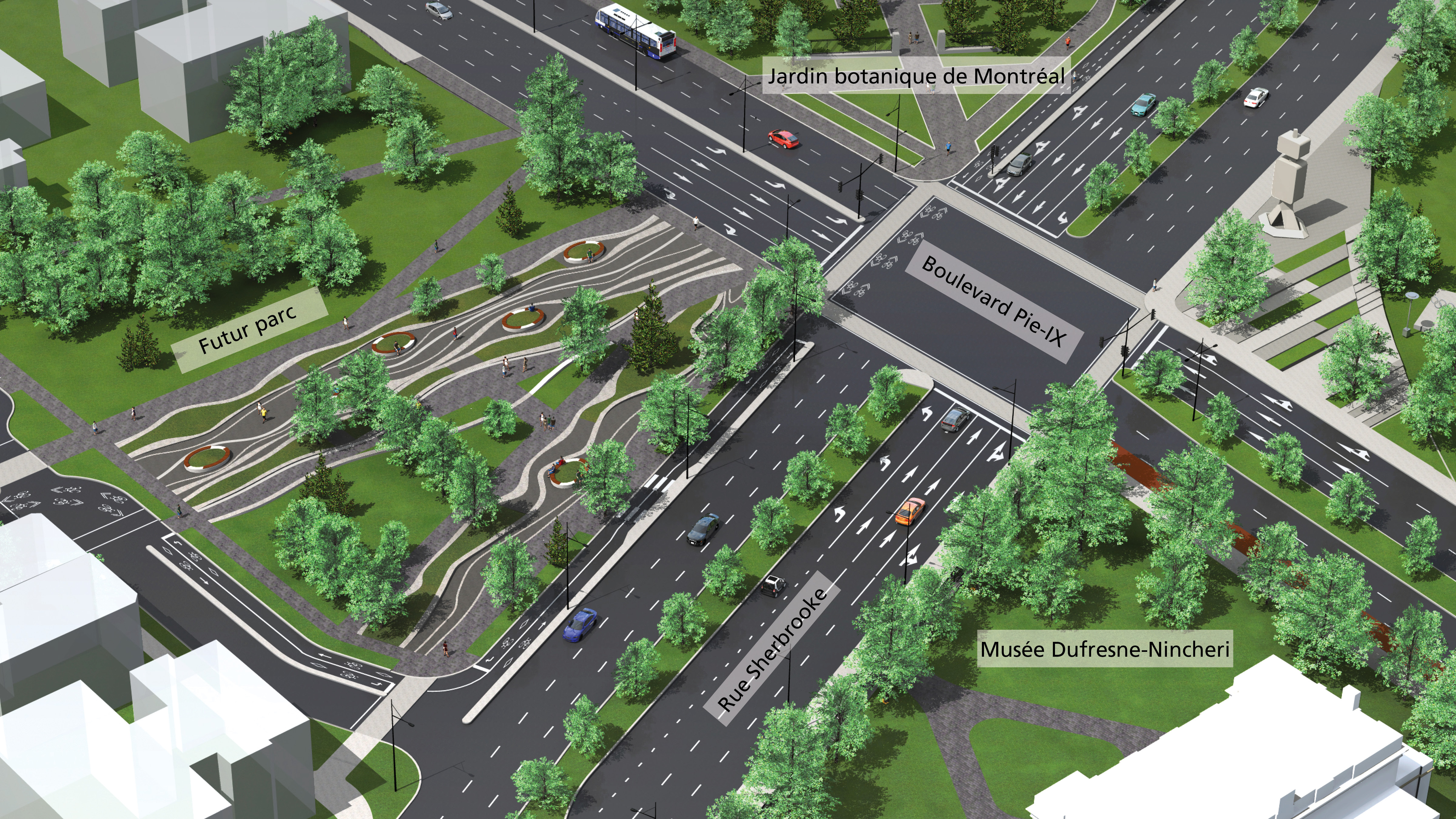 Au cours des deux prochaines années, la Ville-centre réaménagera entièrement le secteur du carrefour Pie-IX/Sherbrooke. L’idée est d’offrir aux citoyens un partage de la rue plus sécuritaire et plus convivial.