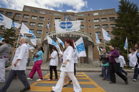Les professionnels en soins de la région de l’est de Montréal ont marché, vêtus de leur sarrau, mercredi, pour dénoncer «les coupes en santé et les impacts de l’austérité libérale».