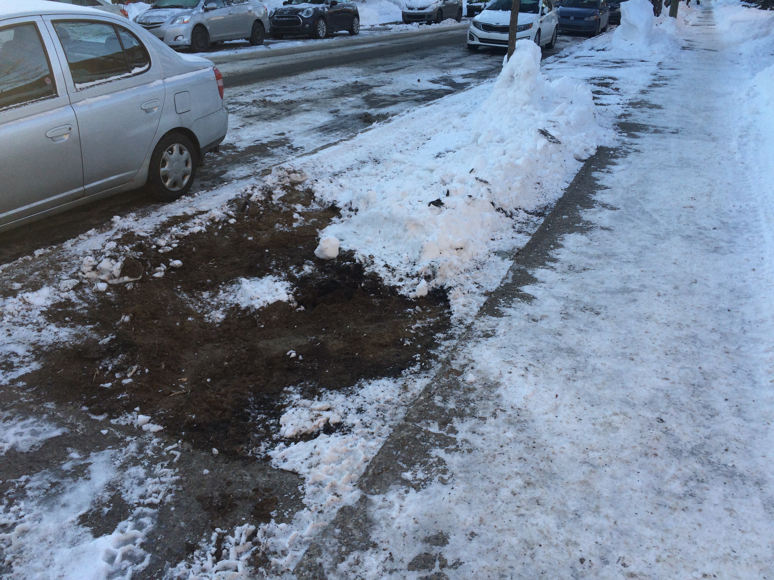 «Sinon, cela forme une cuve sur le trottoir qui s’enneige davantage ou gèle à la suite d’un redoux, ce qui entraîne une accumulation d’eau risquant de rendre le trottoir glissant comme une patinoire. De plus, les résidents ne pourraient ouvrir leurs portières de voiture», ajoute-t-on.