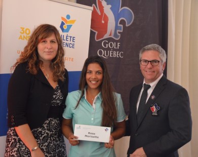 A social science student at Vanier College was recognized for her academic and athletic performance with a $3,000 bursary from the Quebec Foundation for Athletic Excellence (FAEQ) and Golf Québec last week.