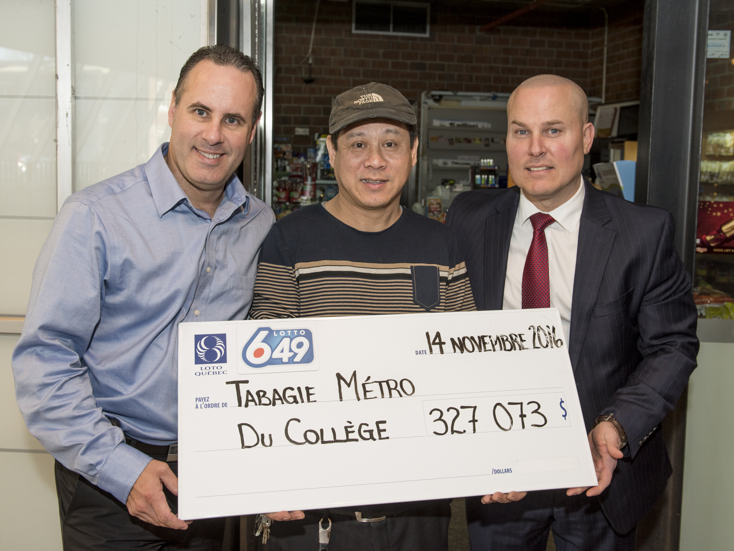 Le propriétaire de la tabagie situé dans l’édicule sud de la station du Collège, sur la rue Cartier, M. Li, était tout sourire lorsqu’il a reçu plus de 300 000 $ pour avoir vendu un billet gagnant du Lotto 6/49.