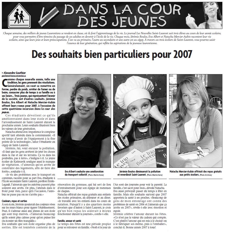 «J’aimerais que les autobus passent plus souvent. De plus, j’attends dans le froid pour rien, parce qu’à l’occasion, l’autobus ne passe pas ou ne s’arrête pas», avait-elle déclarée alors qu’elle fréquentait l’école secondaire Saint-Laurent. Certains usagers se reconnaîtront facilement dans ses paroles.
