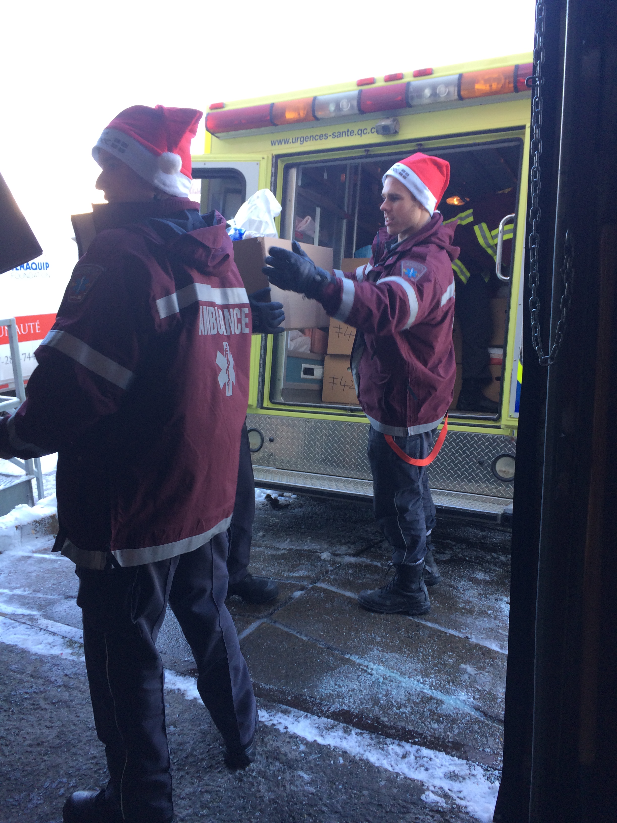 L’Armée du Salut, qui est située sur la Transcanadienne, à Saint-Laurent, a distribué 1 500 paniers de Noël aux familles défavorisées avec l’aide d’Urgences-santé. Grâce à leurs cinq ambulances et la vingtaine de bénévoles, c’est une centaine de paniers qui a pu être livrée au domicile de ceux qui ne pouvaient se déplacer, le 19 décembre.