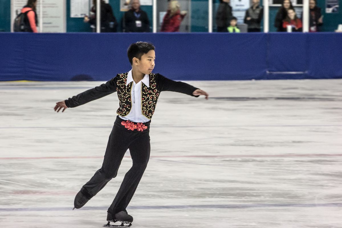 Henry Yeran Zhou, du club de patinage artistique de Saint-Laurent, a terminé au pied du podium dans la catégorie novice aux Jeux du Québec, le 26 février.