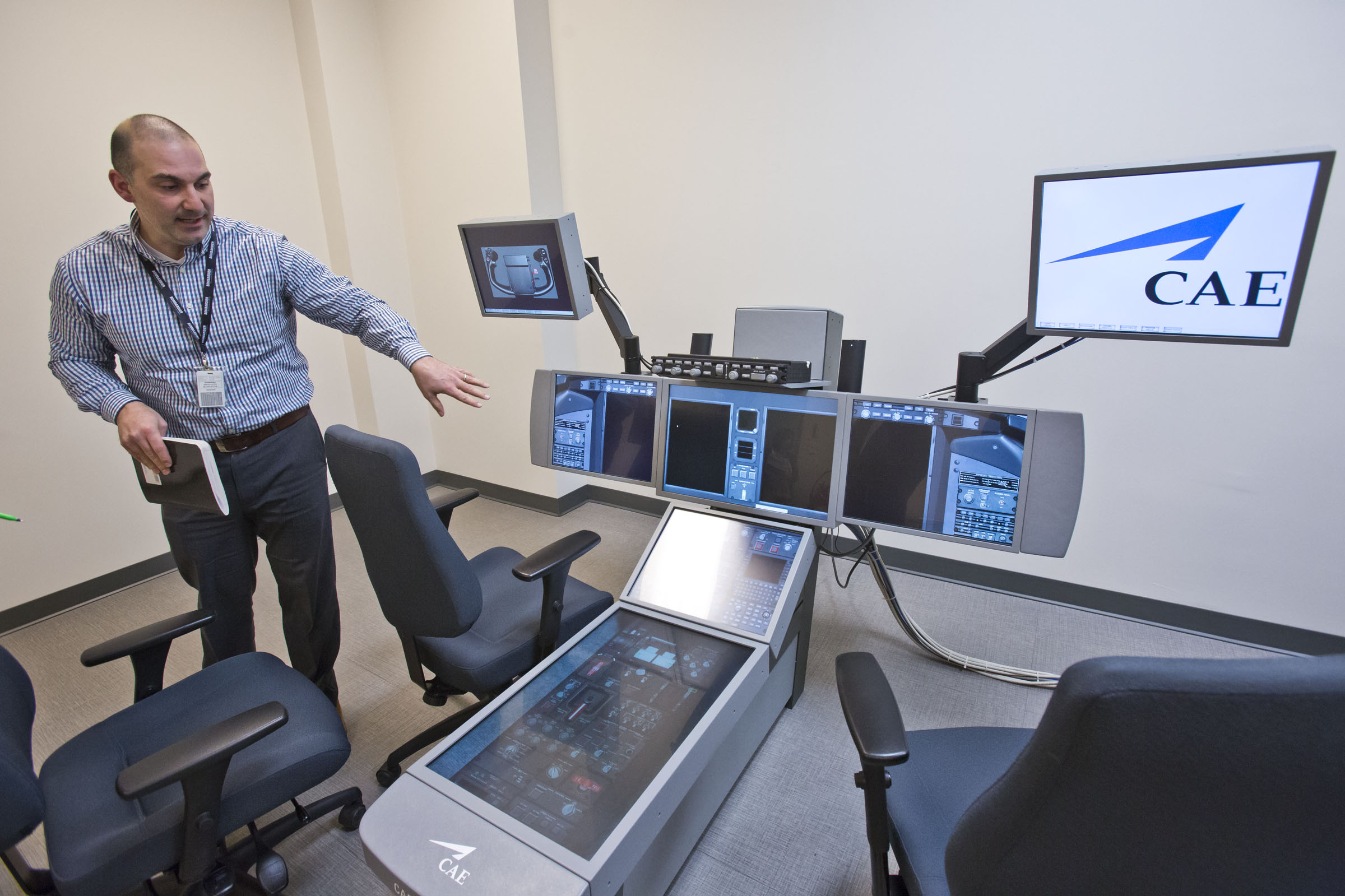 Cet instrument peut également être utilisé lorsque le simulateur de vol, disponible 24h par jour, est occupé. «Tous les contrôles sont fonctionnels. Si tu lèves le pied du frein, tu vois la séquence de ce qui arrive à ton système de freinage sur l’avion», explique Paul Babino, le directeur régional des ventes chez Bombardier.