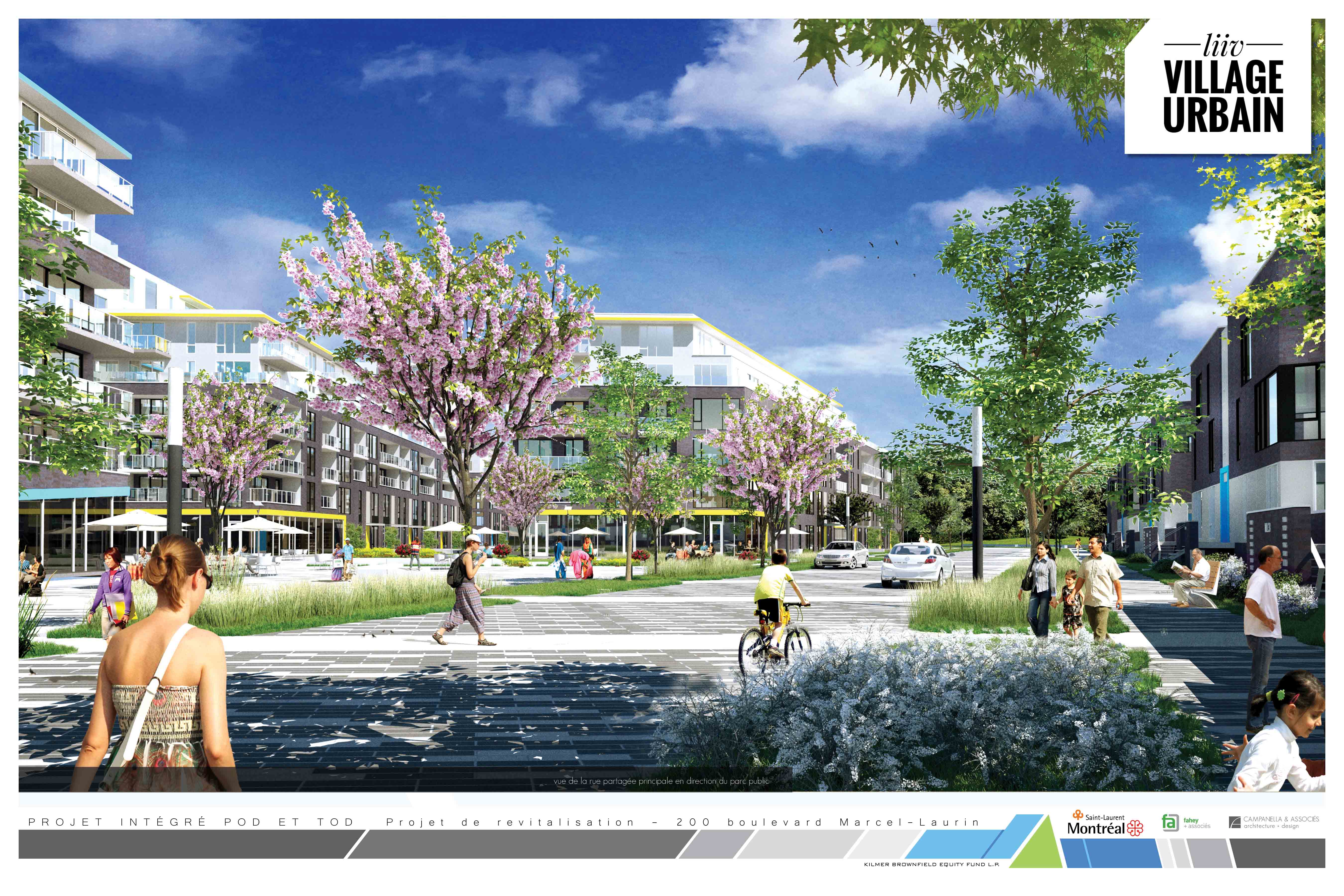 Le terrain vague à l’angle du boulevard Marcel-Laurin et de la voie ferrée du CN, près de l’A-40, à Saint-Laurent, se transformera dans les prochaines années. Le projet Liiv Village urbain, qui sera construit sur le site de l’ancienne usine Honeywell, comptera entre autres 740 unités d’habitation, des commerces de proximité, une place publique et un parc.