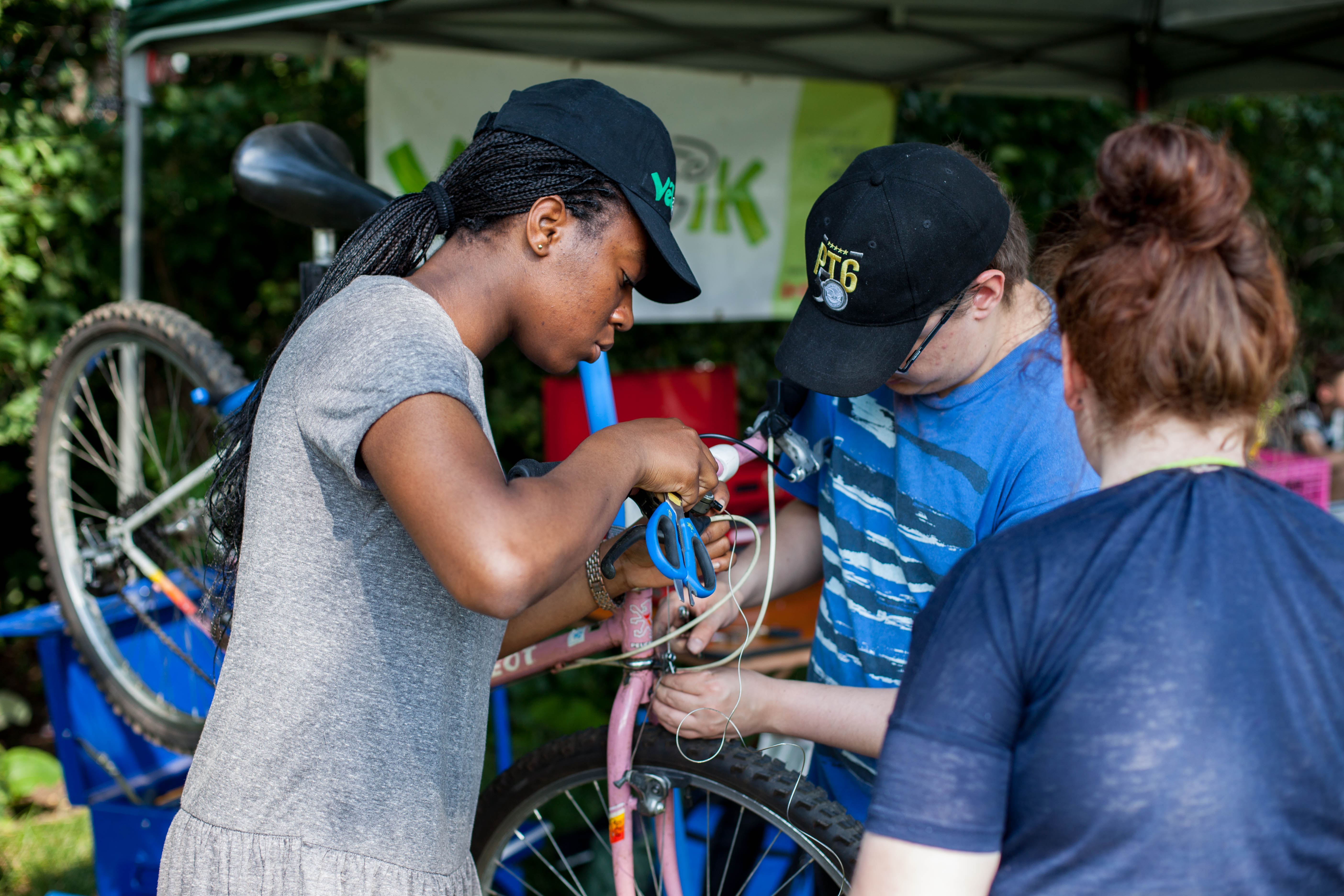 Le stage leur permet d’apprendre bien plus que les rudiments du vélo, alors qu’ils doivent travailler ensemble, encadrés par les deux intervenants-mécaniciens, Andrey Leshyner et Annie Viau.