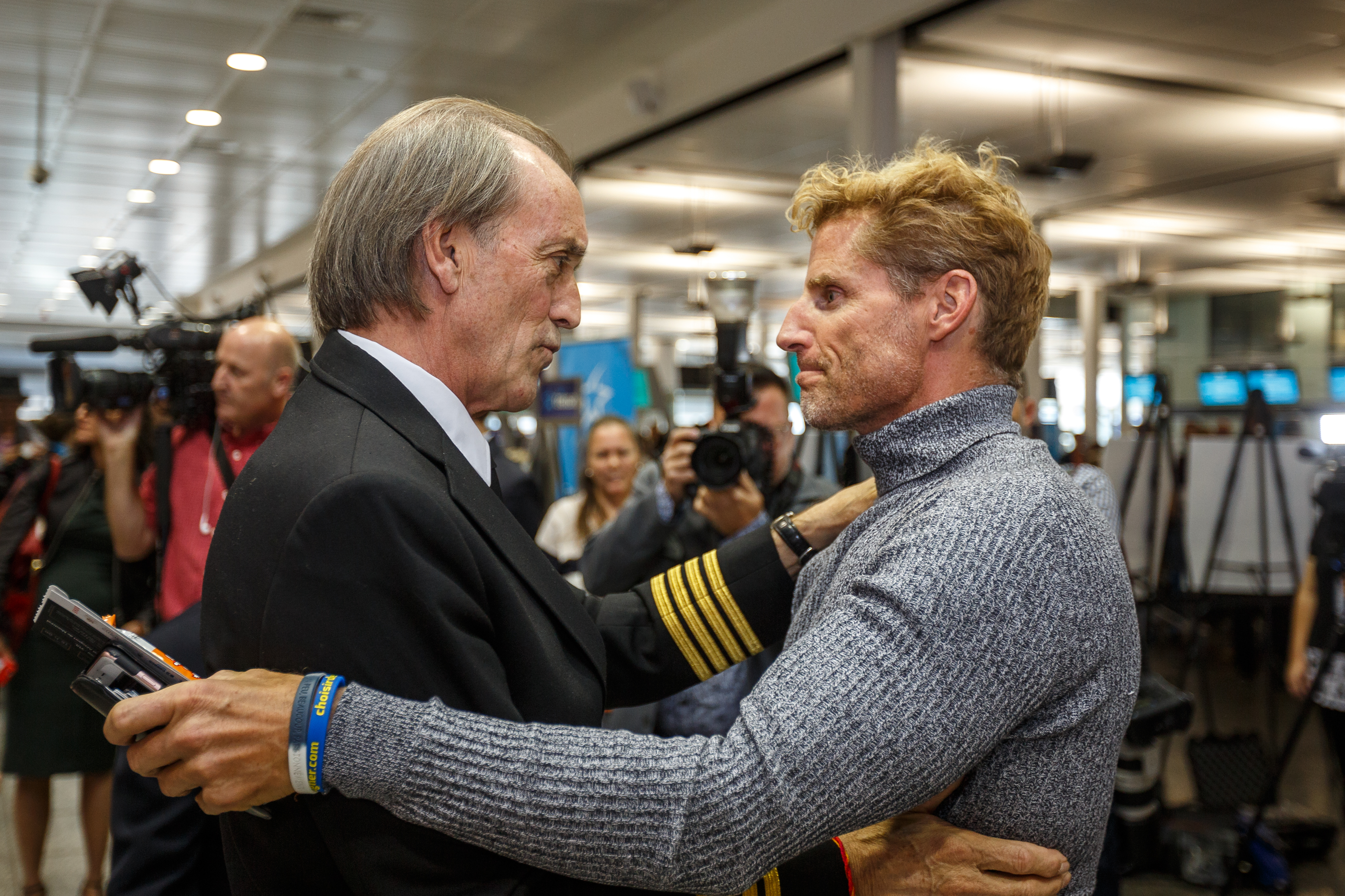«Comme beaucoup de gens qui participent à cette envolée, il s’est lui aussi repris en main. Il est un exemple pour plusieurs. Il a eu un comportement héroïque lors de son fameux atterrissage, mais c’est plus que ça. On est ici pour l’homme», a commenté Gilles Duceppe.
