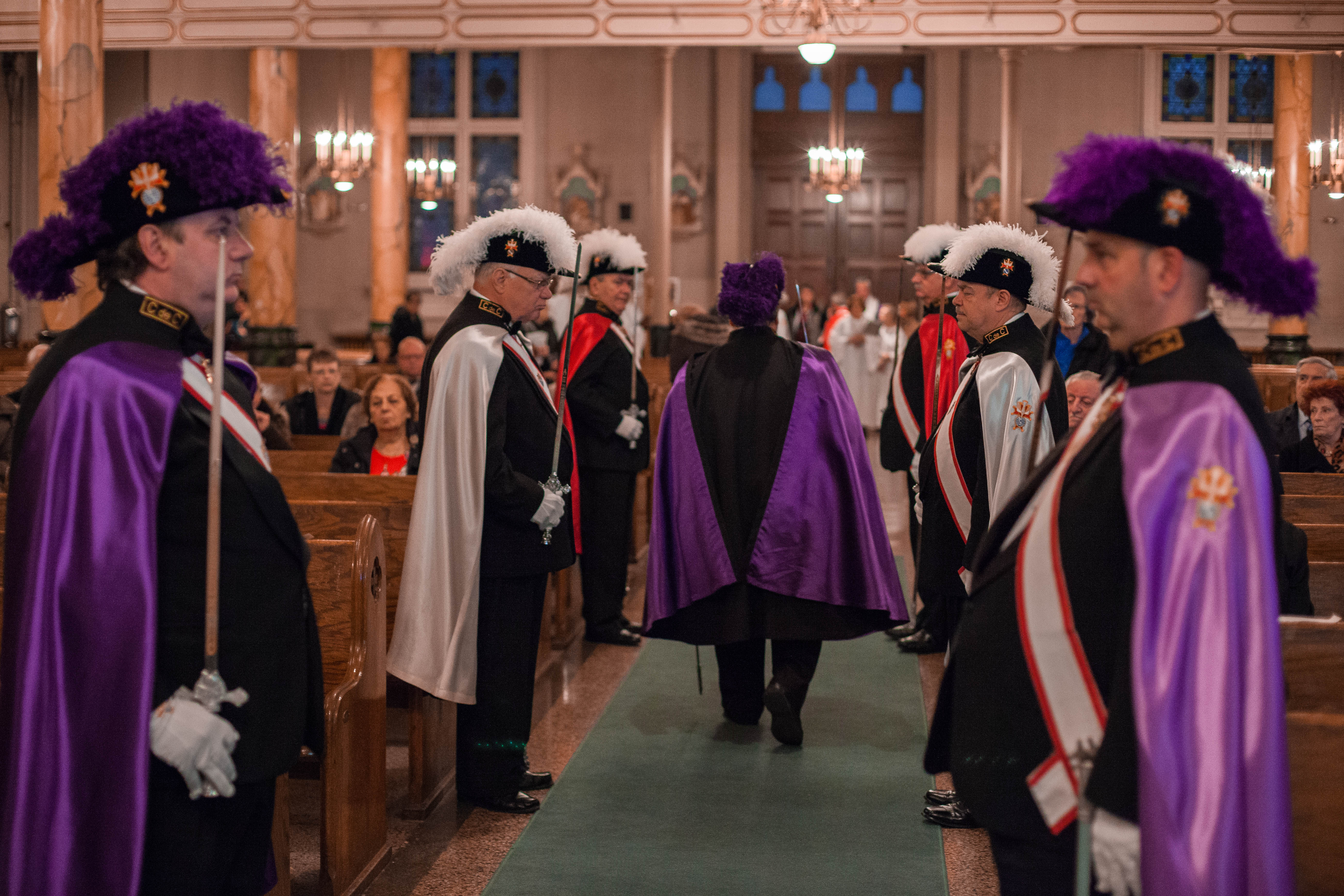 La cérémonie permet d’accueillir les nouveaux membres, présentés par un parrain, avant qu’ils ne franchissent les quatre degrés que comptent les Chevaliers de Colomb. «Mais il n’y a plus d’initiation comme avant», ajoute-t-il. Des rumeurs circulaient par le passé sur les rites initiatiques de l’ordre.