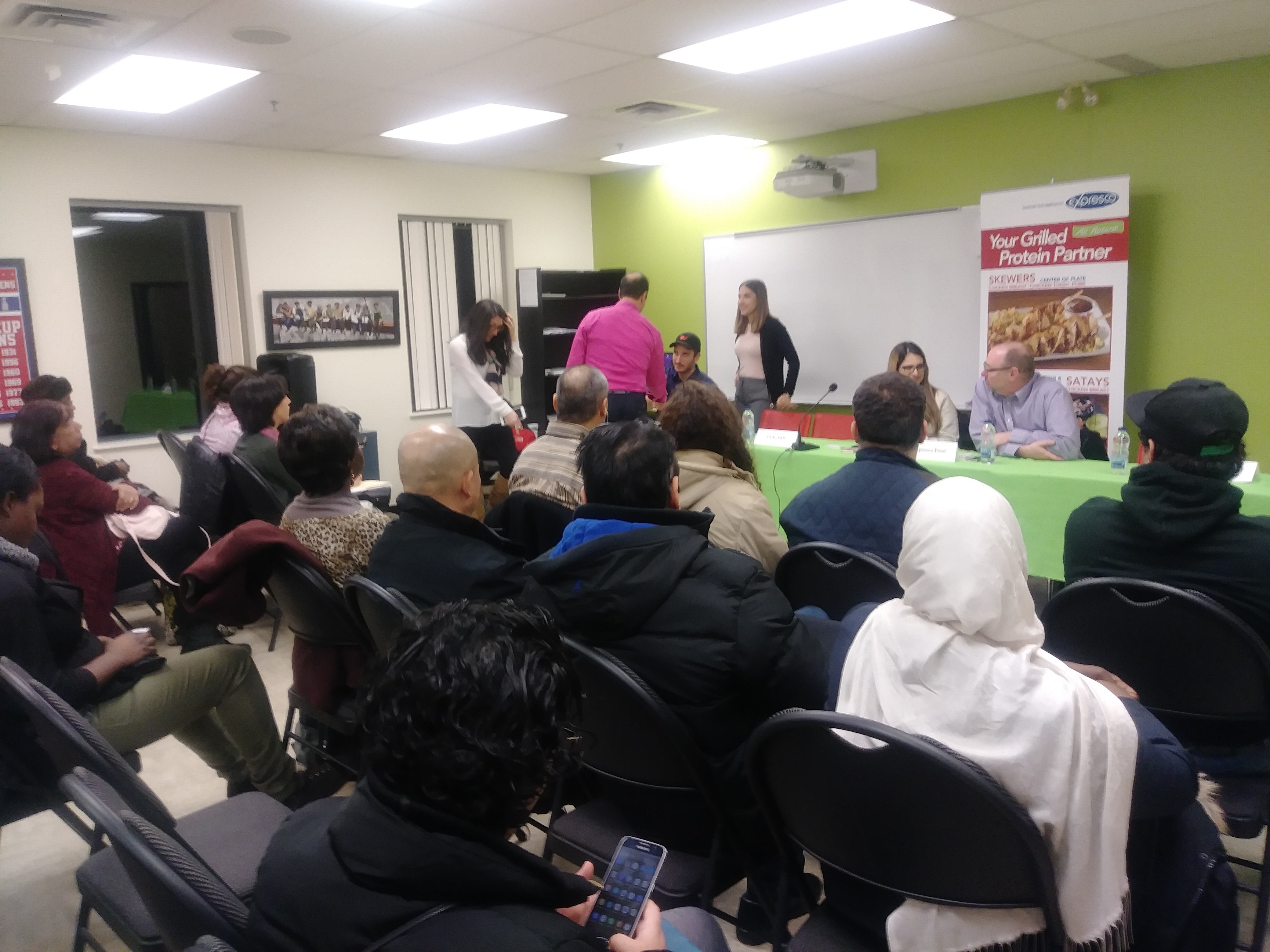 The host organization, CARI, invites their immigrant clientele to meet with the employers in this casual atmosphere. The goal is not necessarily to find a job that night, but to help the new Quebecers to be comfortable when meeting a prospective employer.