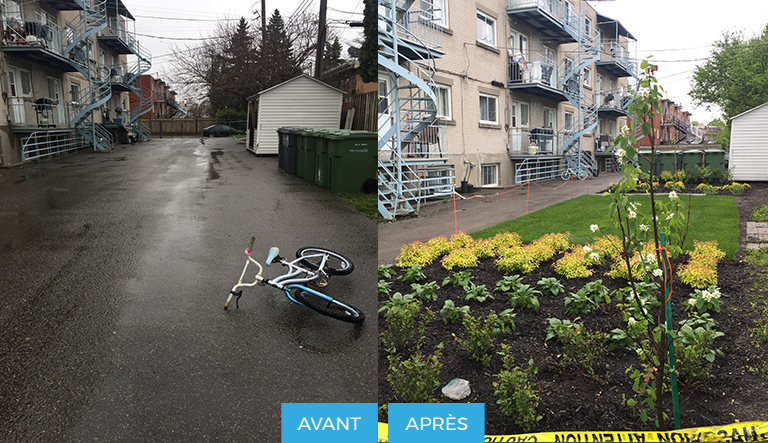 Des sites asphaltés seront transformés en espaces verts collectifs dans Saint-Laurent d’ici 2020. L’initiative Sous les pavés mobilise les résidents du quartier, qui procèdent à la main aux aménagements des sols.