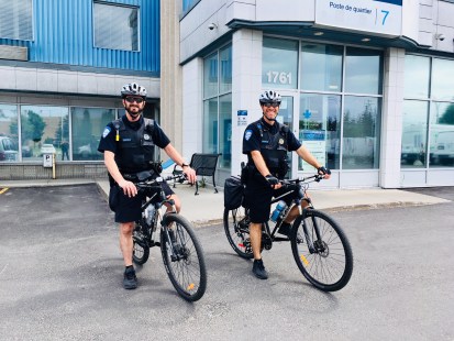 Les agents Yannick Montambault et Louis Panneton-Maguire du poste de quartier (PDQ) 7 patrouilleront les rues et pars de Saint-Laurent pendant tout l’été. Grâce à leur proximité avec les résidents, ils peuvent notamment sensibiliser les cyclistes et les piétons aux bonnes habitudes de partage de la route. Comme tous les agents du Service de police de la Ville de Montréal (SPVM), ils surveillent également crimes et incivilités. L’année dernière, les patrouilleurs à vélo de Saint-Laurent avaient arrêté l’un des criminels les plus recherchés des États-Unis.