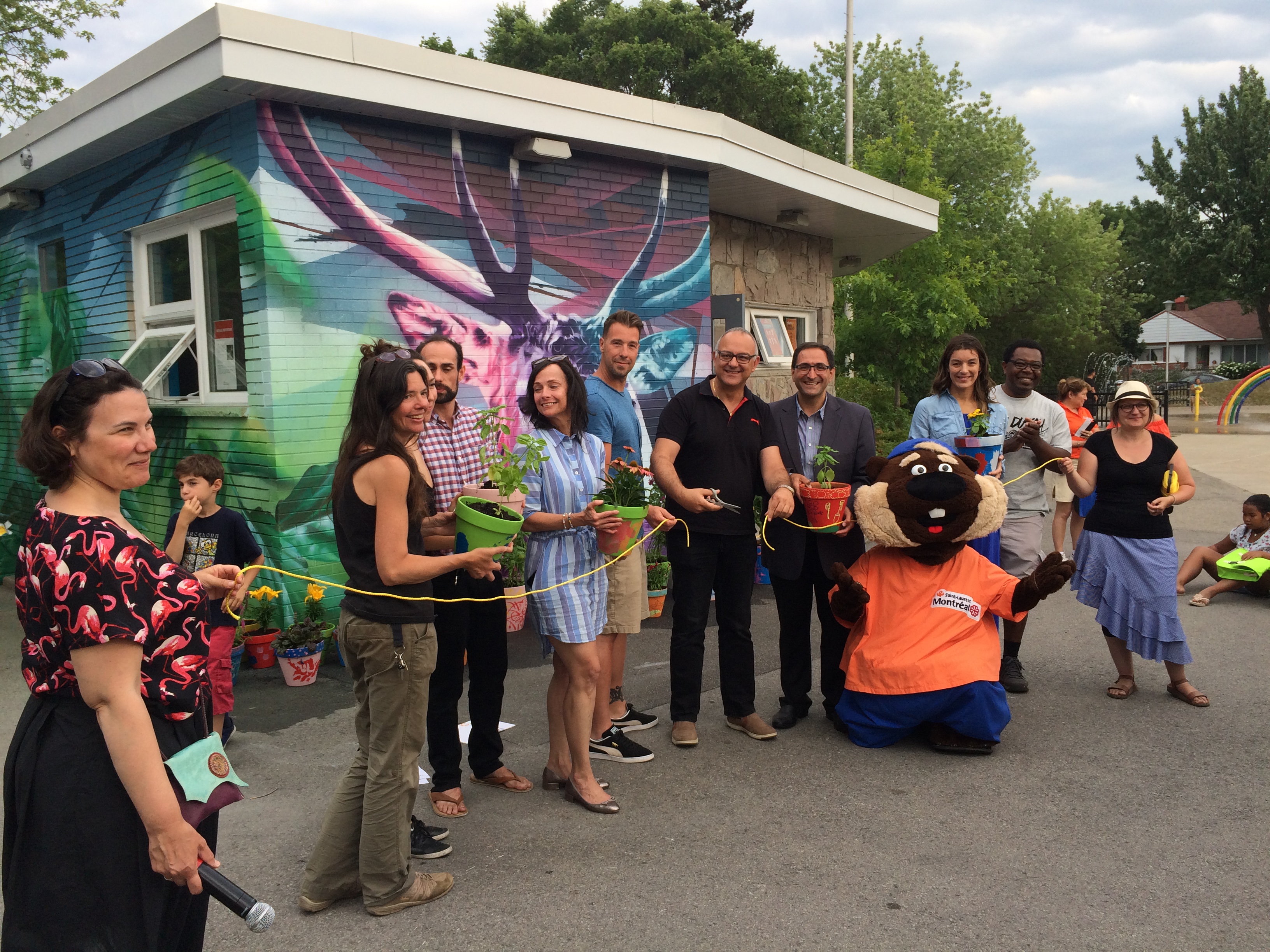 Réalisée dans le cadre du Programme d’art mural de la Ville de Montréal grâce à un montant de près de 13 000 $, l’œuvre a réuni plusieurs organismes afin de collaborer avec la communauté. Une boîte à idées avait notamment été laissée au parc Poirier où une trentaine de suggestions ont été déposées.