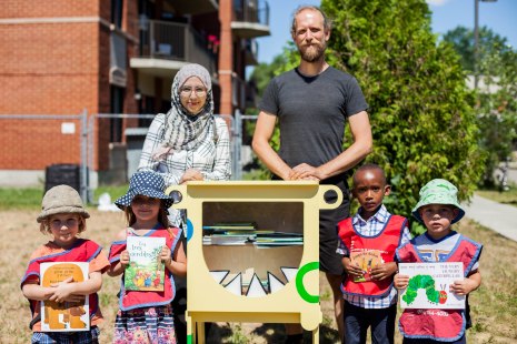 Pour le développement langagier de tous les enfants de Saint-Laurent, où plus d’une personne sur deux n’est pas née au Canada, un croque-livres multilingue a vu le jour. Située près de la Maison de l’enfance, la boîte à livres est une initiative de l’orthophoniste Sabah Meziane.