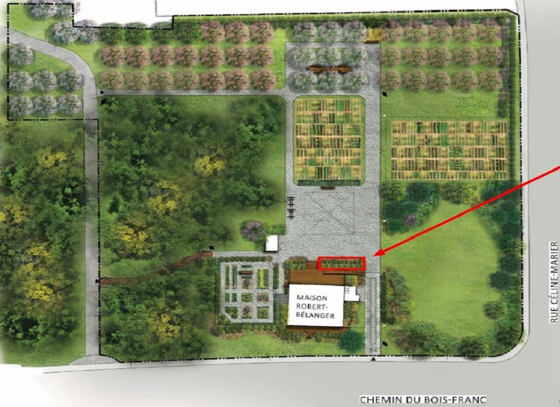 L’œuvre d’art sera placée en bordure de la terrasse et de l’accès principal situé à l’arrière du bâtiment.