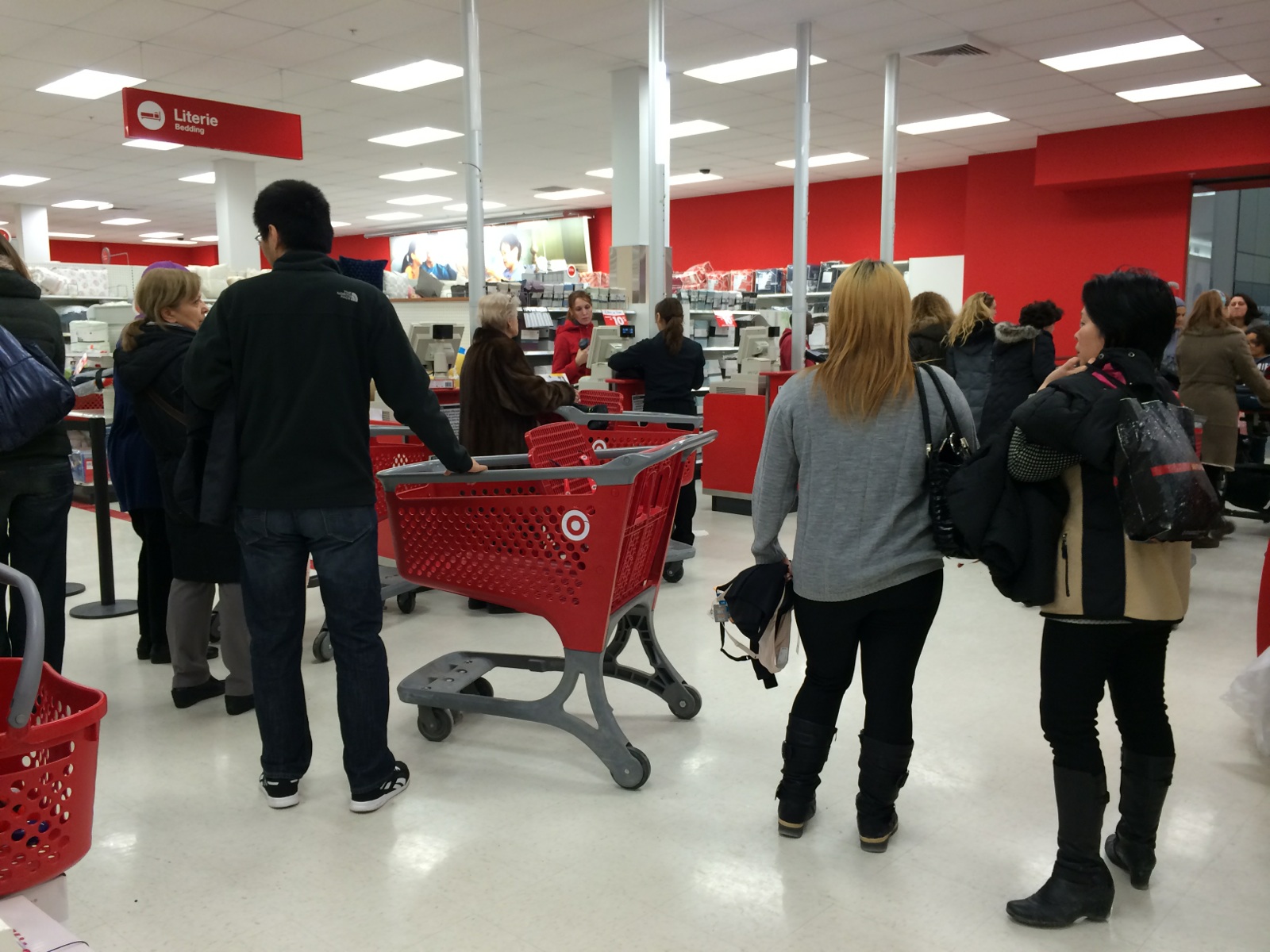 Depuis neuf heures jeudi matin, la clientèle n’a pas arrêté d’affluer dans le magasin Target de la Place-Vertu. De nombreuses personnes déambulent dans les allées. Partout, des vêtements et différents objets jonchent le sol, victimes de la précipitation des clients.