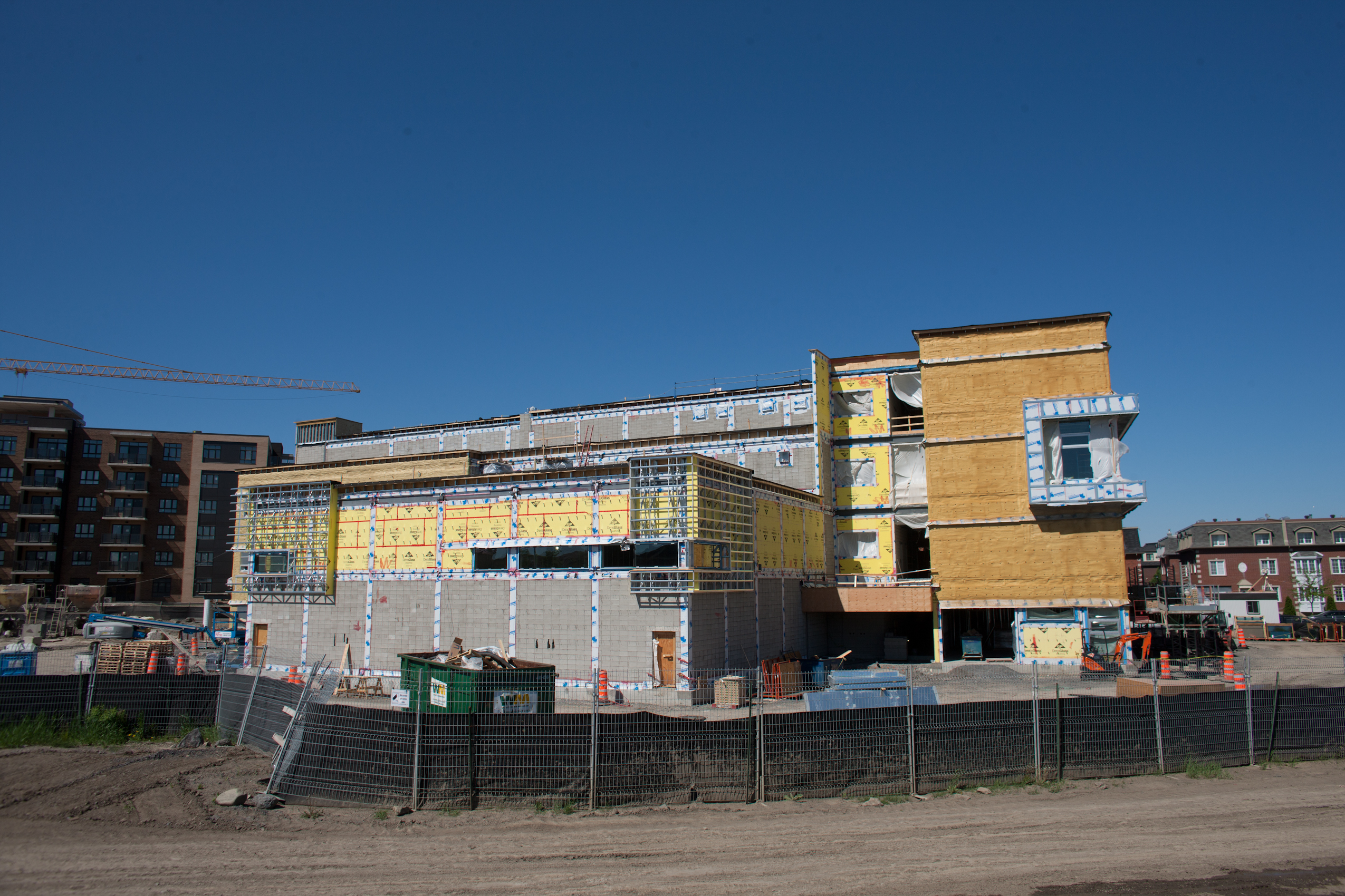 La construction de la nouvelle école Saint-Laurent Ouest est dans son dernier droit. Les ouvriers s’activent aux abords du boulevard Cavendish pour livrer la bâtisse à temps pour la rentrée.