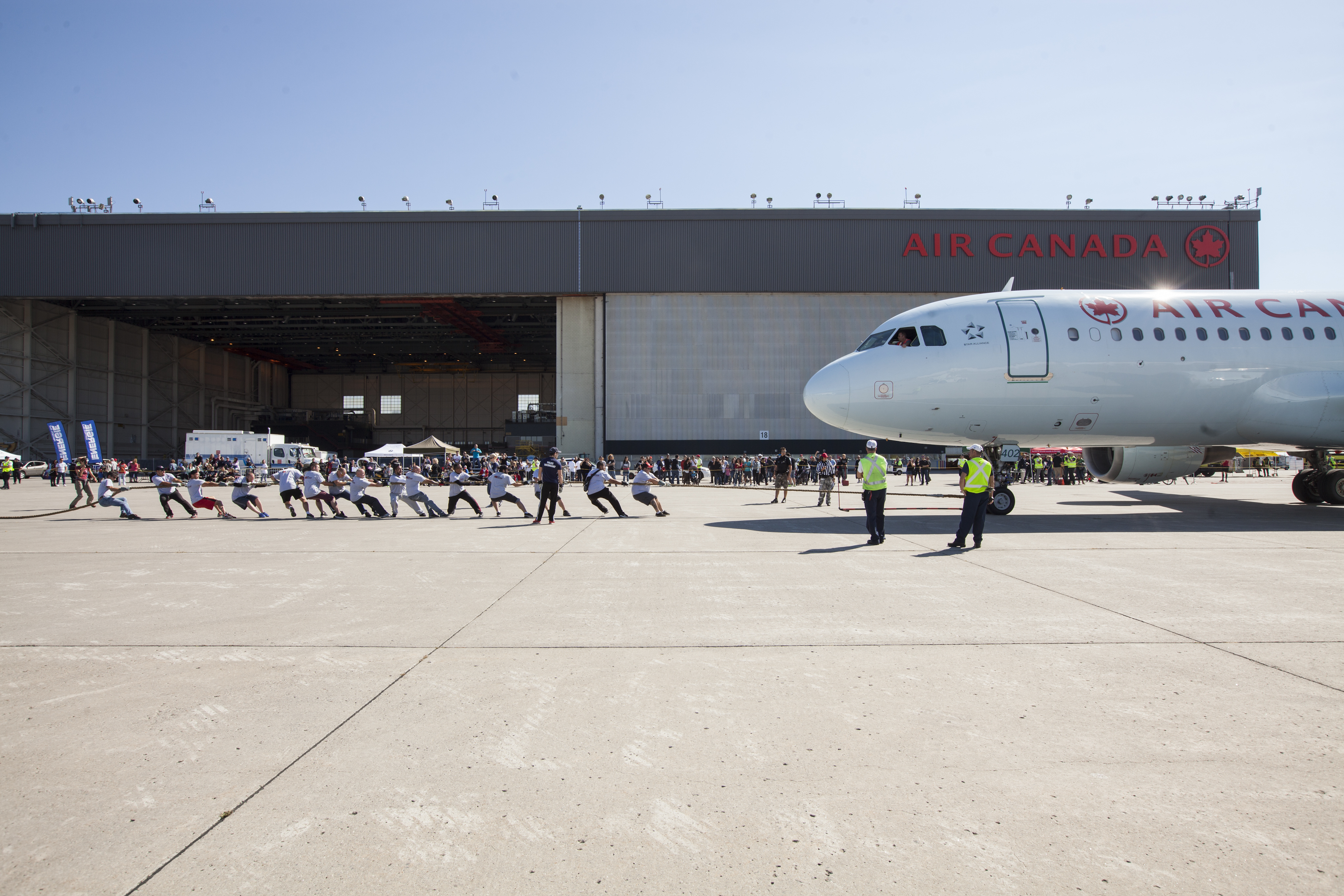 La compétition a débuté vers 10h30. Mille personnes ont assisté au tractage de l’appareil de 73 000 kilos. C’est l’équipe constituée des policiers du poste de quartier 5, à Pointe-Claire, qui a remporté l’épreuve en un peu plus de 8 minutes.