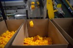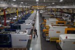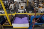L’ère de fabrication compte 80 énormes machines de moulage qui fonctionnent 24 heures sur 24, à longueur d’année. De gros bacs déversent la résine et le colorant pour qu’ils soient mélangés et fondus. Il faut compter à peine 8 secondes pour qu’une brique sorte des presses.