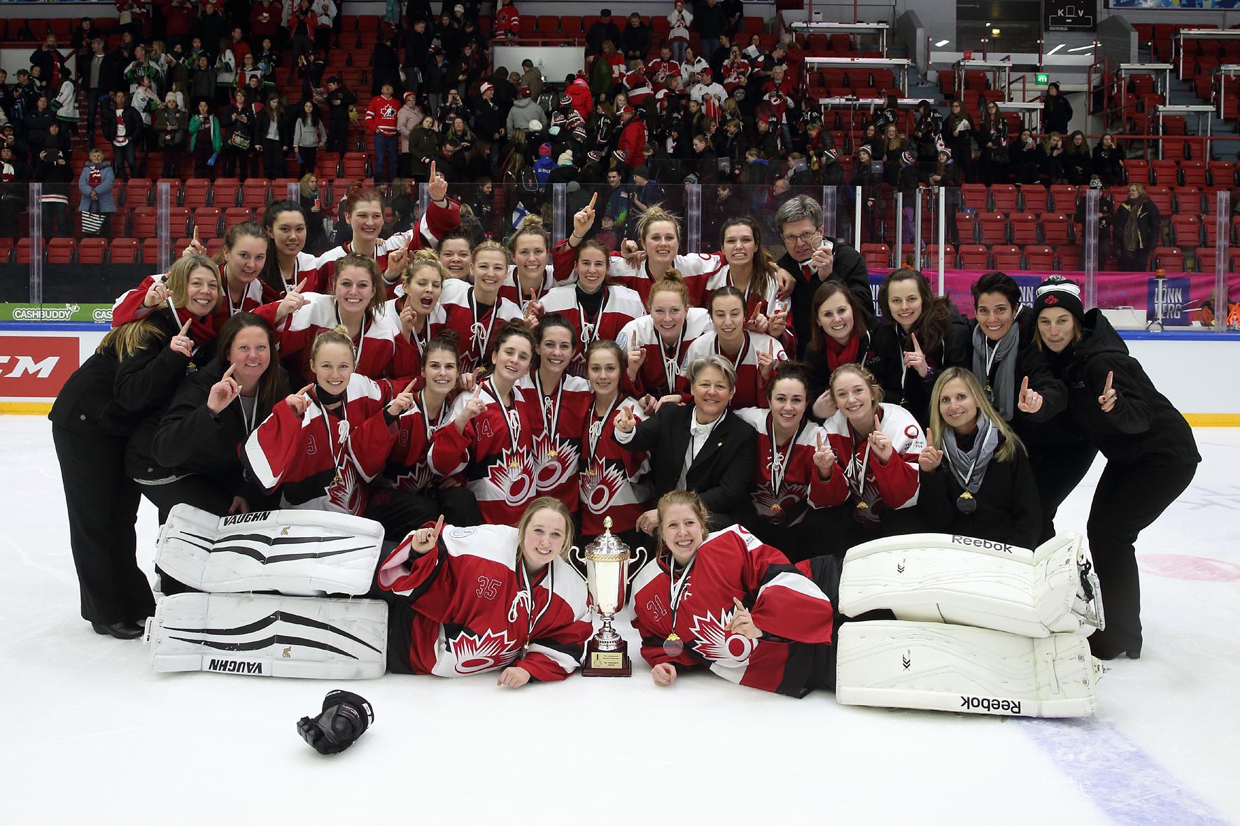 Canada's junior Ringette team took the gold at the World Ringette Championships in Helsinki, Finland on Sunday, January 3, 2016. Photo: Jouni Valkeeniemi/Ringette Finland