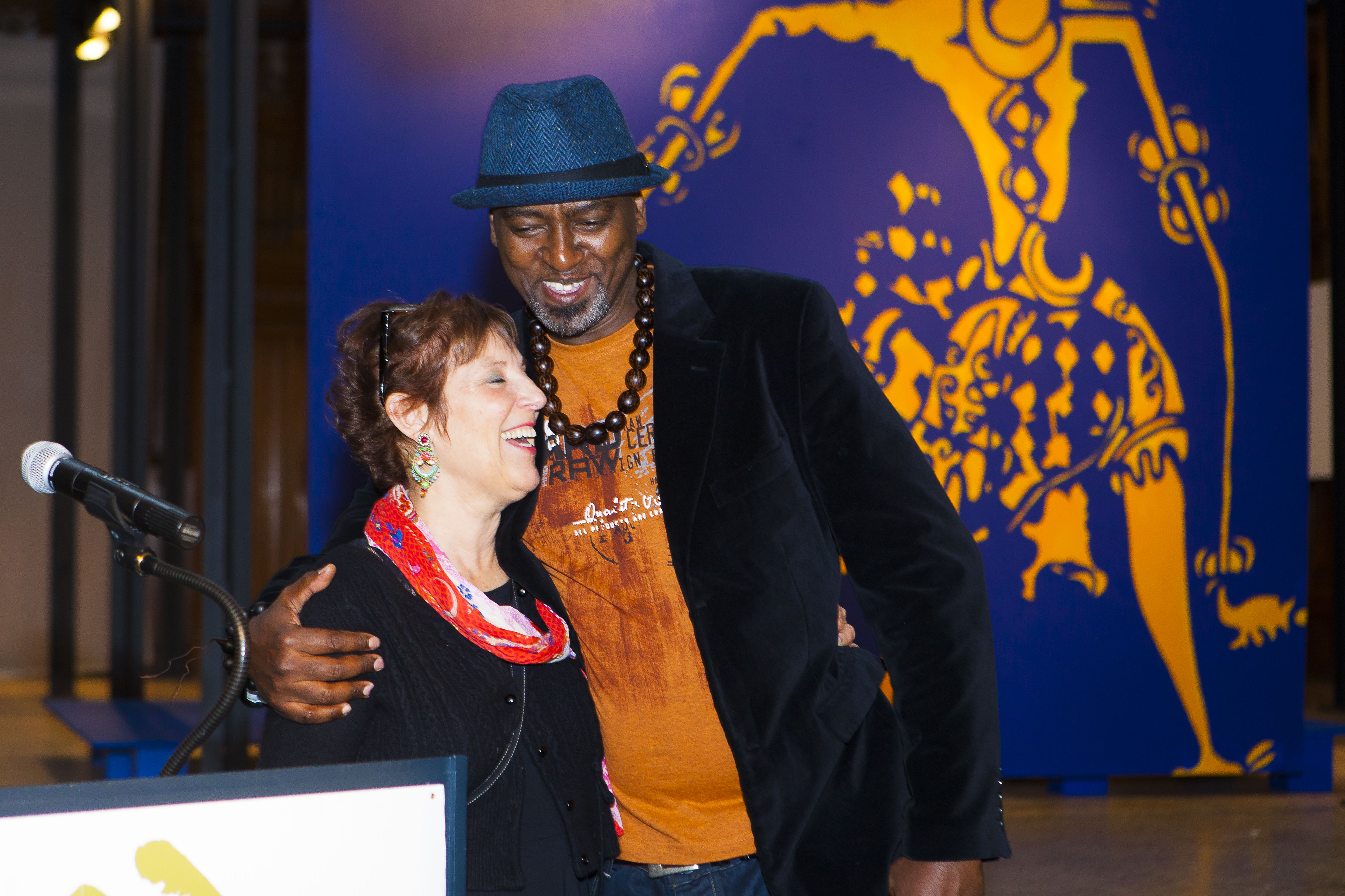 Le vernissage de l’exposition Les Jumeaux du CARI, vol 3, no 6 a réuni les artistes Eugène Gumira, originaire du Rwanda, et la Montréalaise Solange Courval le 24 mars au Musée des maîtres et artisans du Québec.