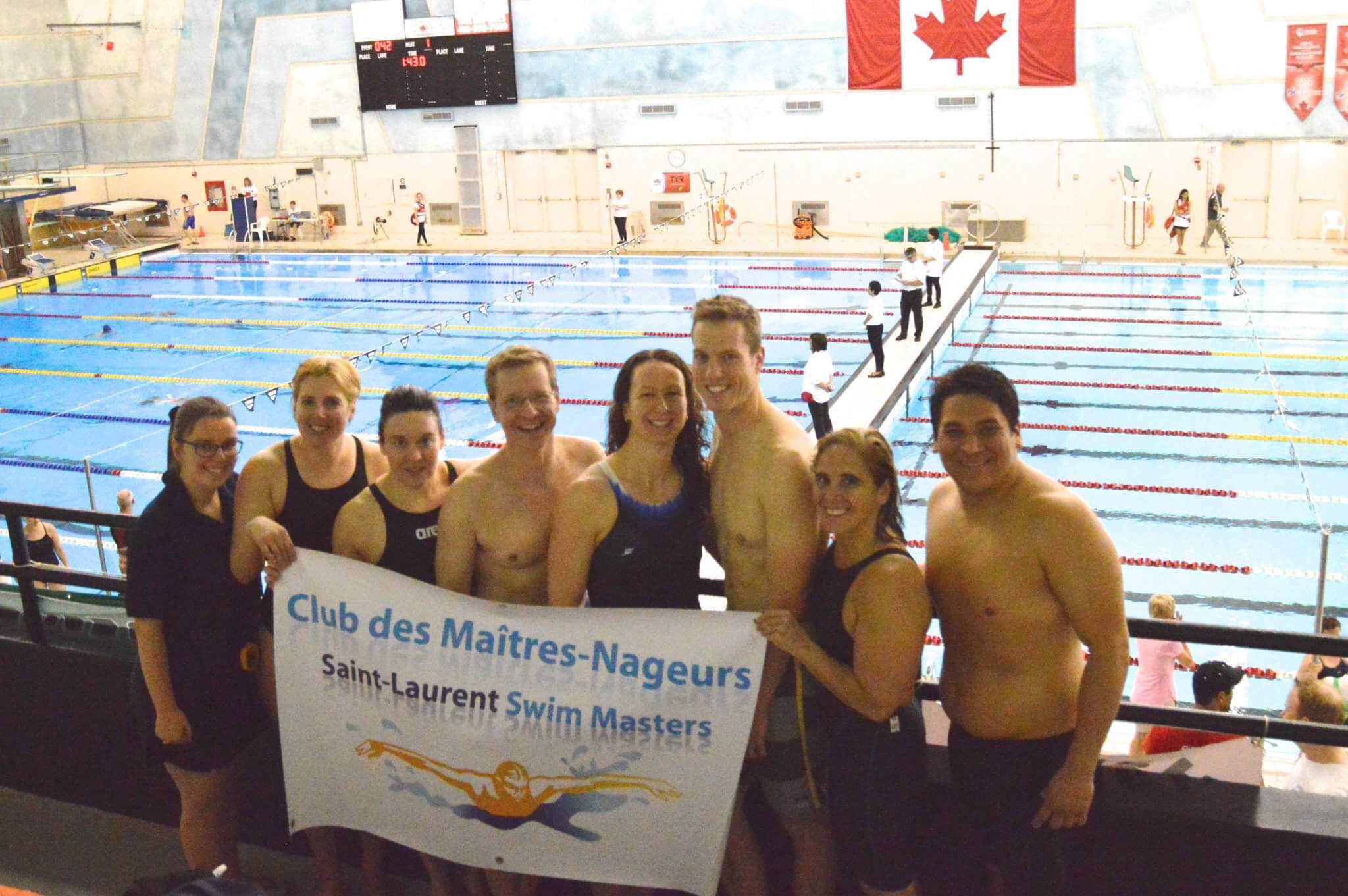 Seven members of the Saint-Laurent Swim Masters, along with coach Éliane Racine, participated this past Victoria Day long weekend to the Canadian Masters Swimming Championships at Etobicoke Olympium in Toronto.