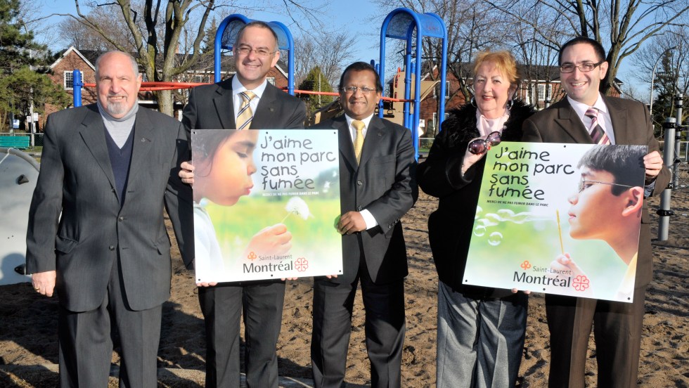 L’arrondissement Saint-Laurent souhaite que le gouvernement du Québec étende l’interdiction de fumer aux terrains de jeux pour enfants, terrains sportifs, parcs et plages publiques. En appui au projet de loi
