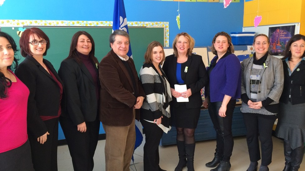 Christine Saint-Pierre, ministre des Relations internationales et de la francophonie et députée de l’Acadie était de passage à l’école François-de-Laval, de Bordeaux, le 16 février, pour annoncer l’octroi d’un montant