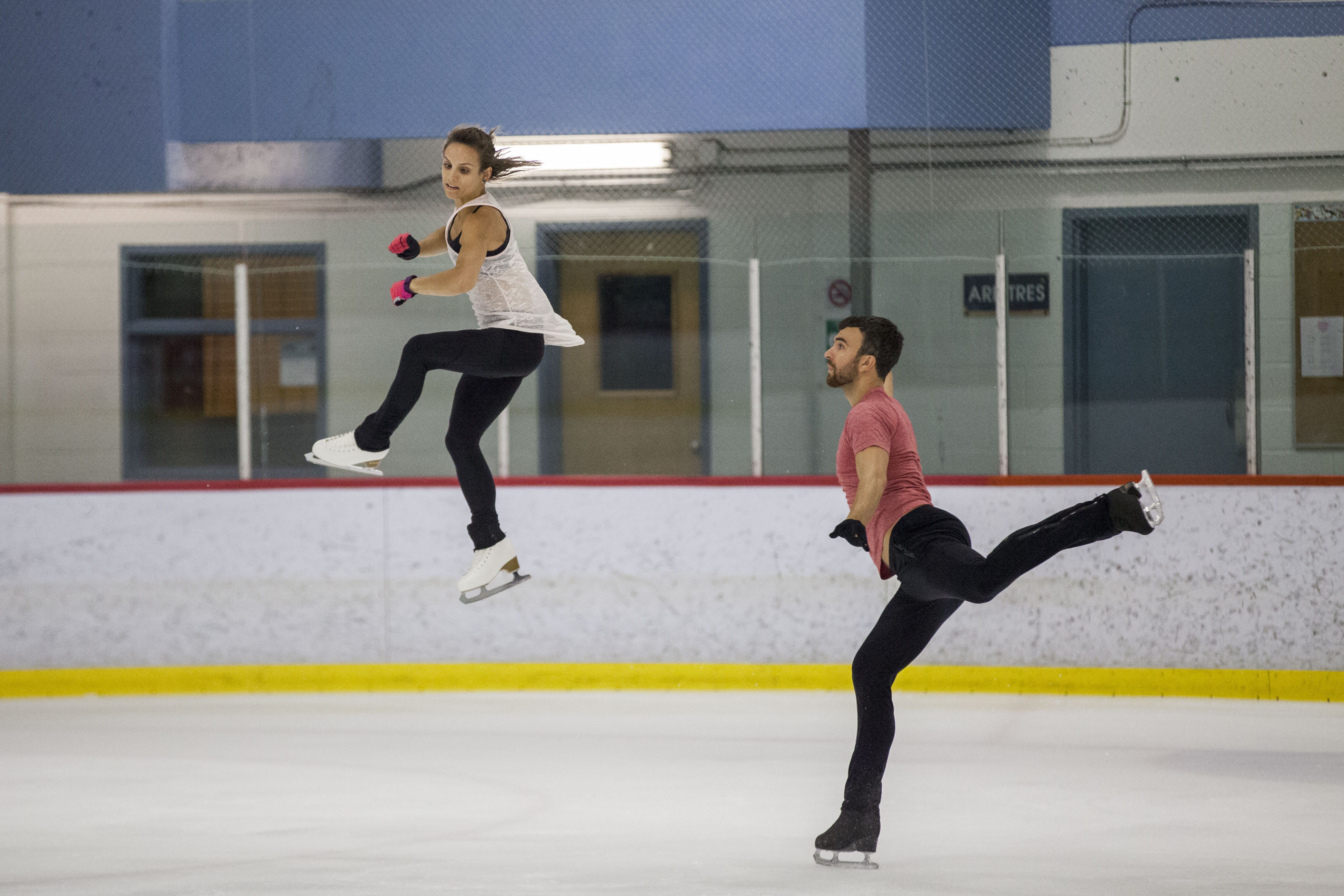 Dès 6h45, une vingtaine de couples de patineurs se rendent à l’aréna Roberto-Luongo pour pratiquer leurs routines et leurs sauts. Parmi les athlètes toujours présents, on remarque les doubles champions du monde et quintuples champions canadiens, Éric Radford et Meagan Duhamel. L’équipe d’entraîneurs les conseille, notamment, sur leur posture et leur position pour qu’ils soient fin prêts pour le début de la saison, qui commencera sous peu.