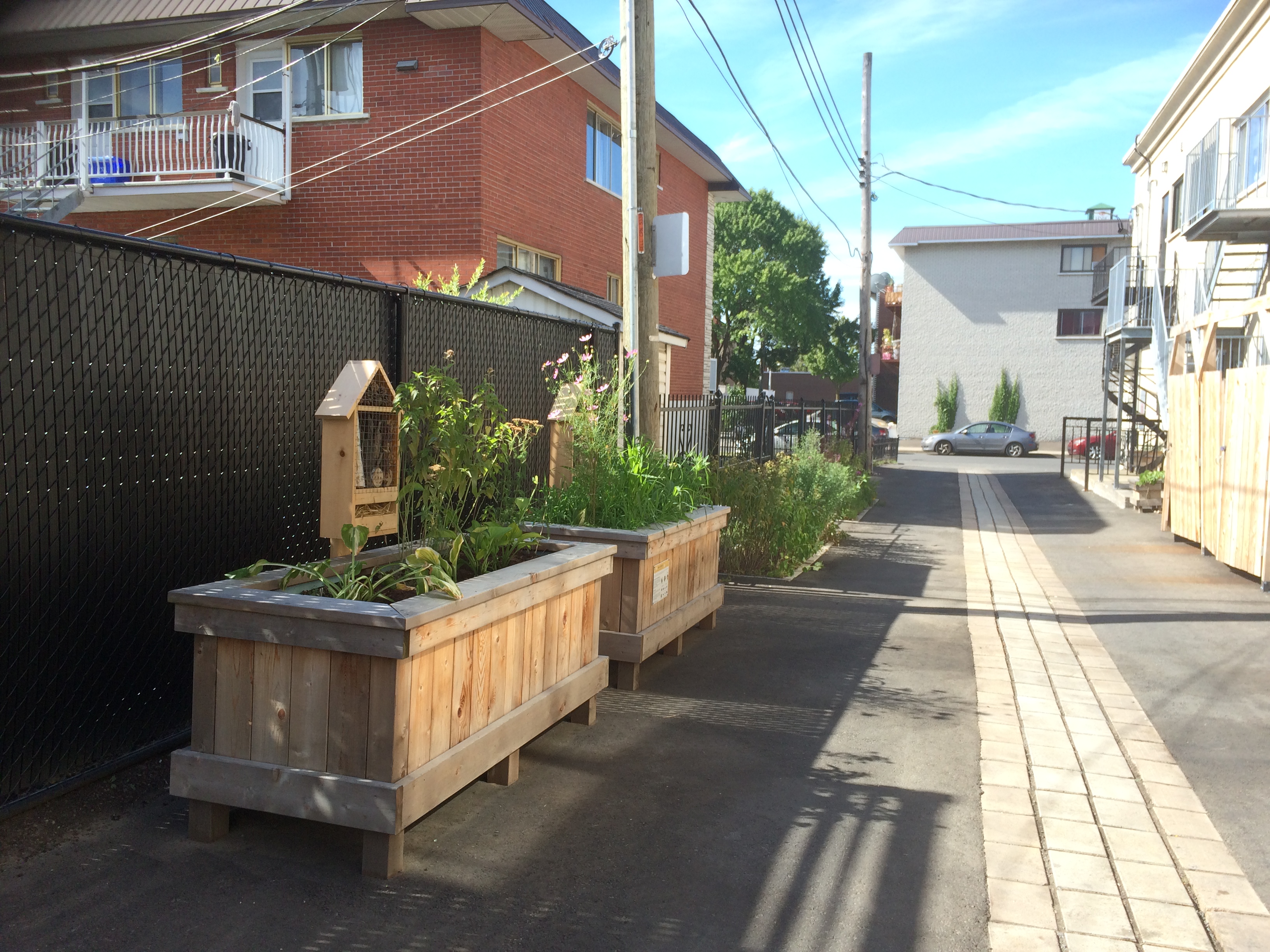 «Les aménagements pour lesquels nous avons opté dans le cadre de ce projet permettent d’introduire la biodiversité en milieu urbanisé et d’augmenter le verdissement du secteur, tout en améliorant la propreté, notamment en camouflant certains éléments moins intéressants, mais néanmoins nécessaires aux commerces qui bordent la ruelle, dont les conteneurs à déchets», souligne pour sa part la directrice adjointe de l’Écoquartier de Saint-Léonard, Esther Tremblay.