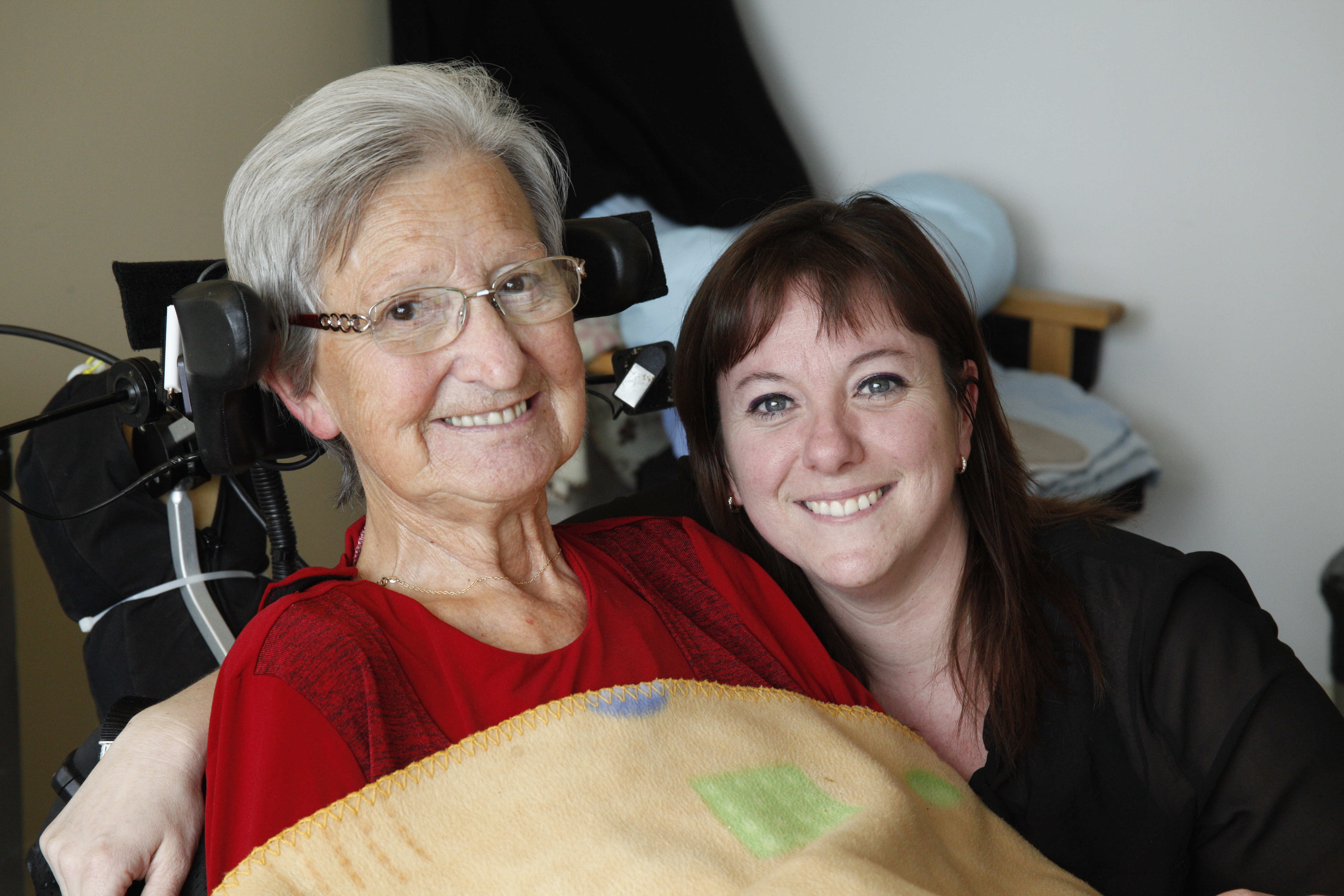 Handicapée par la maladie, Mme Papineau a perdu presque toute sa mobilité et ne s’exprime que par l’intermédiaire d’un ordinateur qu’elle pilote avec ses yeux. « Elle m’apporte du courage et me donne le moral », écrit-elle sur son écran pour parler de sa préposée.