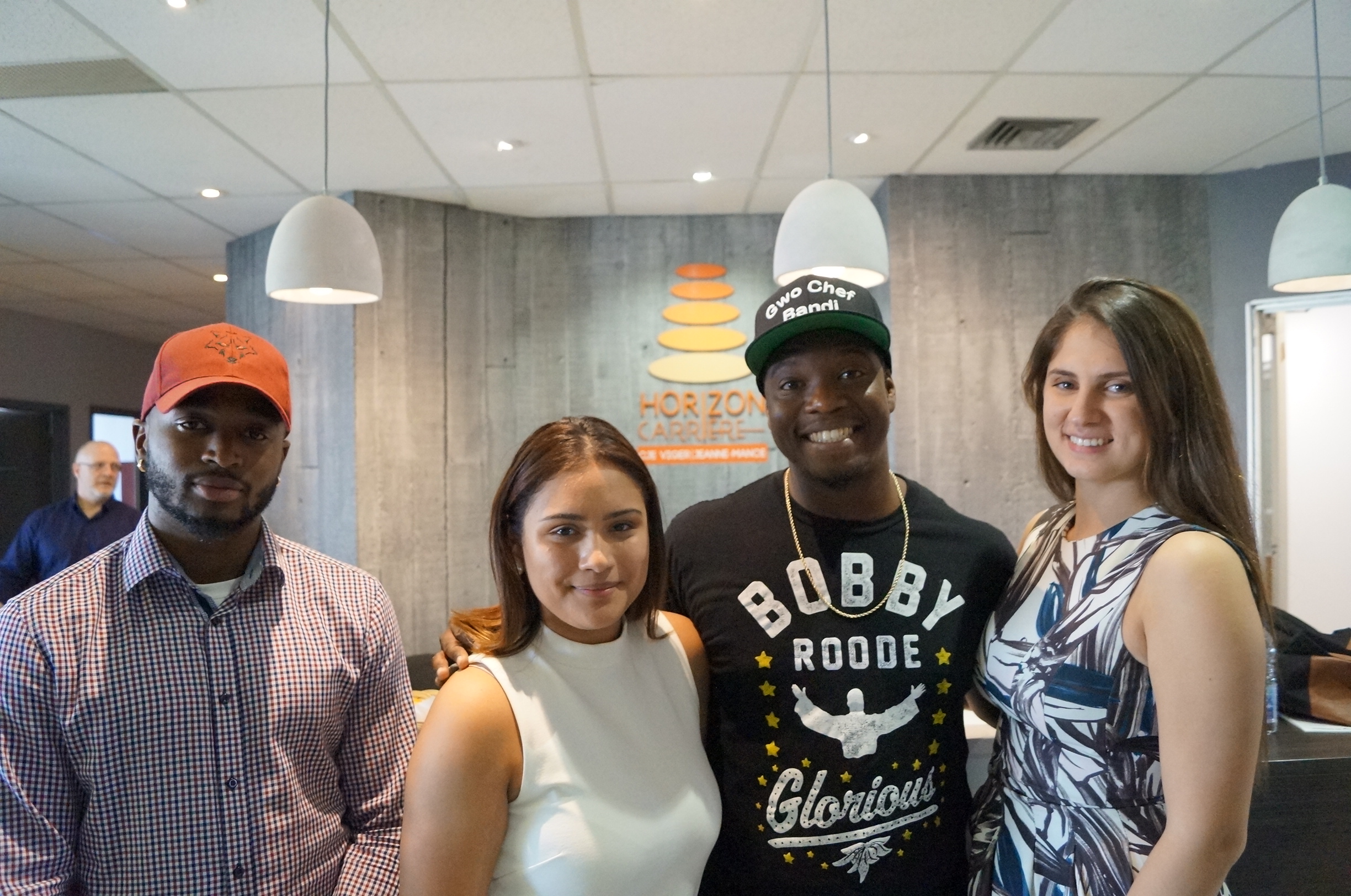 Une quarantaine de personnes, dont 20 résidents de Saint-Léonard, ont pris part aux portes ouvertes de Horizon Carrière, CJE Viger/Jeanne-Mance de Saint-Léonard, le 10 avril dernier. Recherche d’emploi, retour aux études, entrepreneuriat et projets, de nombreux sujets ont été abordés pendant cet après-midi d’activités, qui s’est clôt par un spectacle de l’humoriste Kevin Raphael.