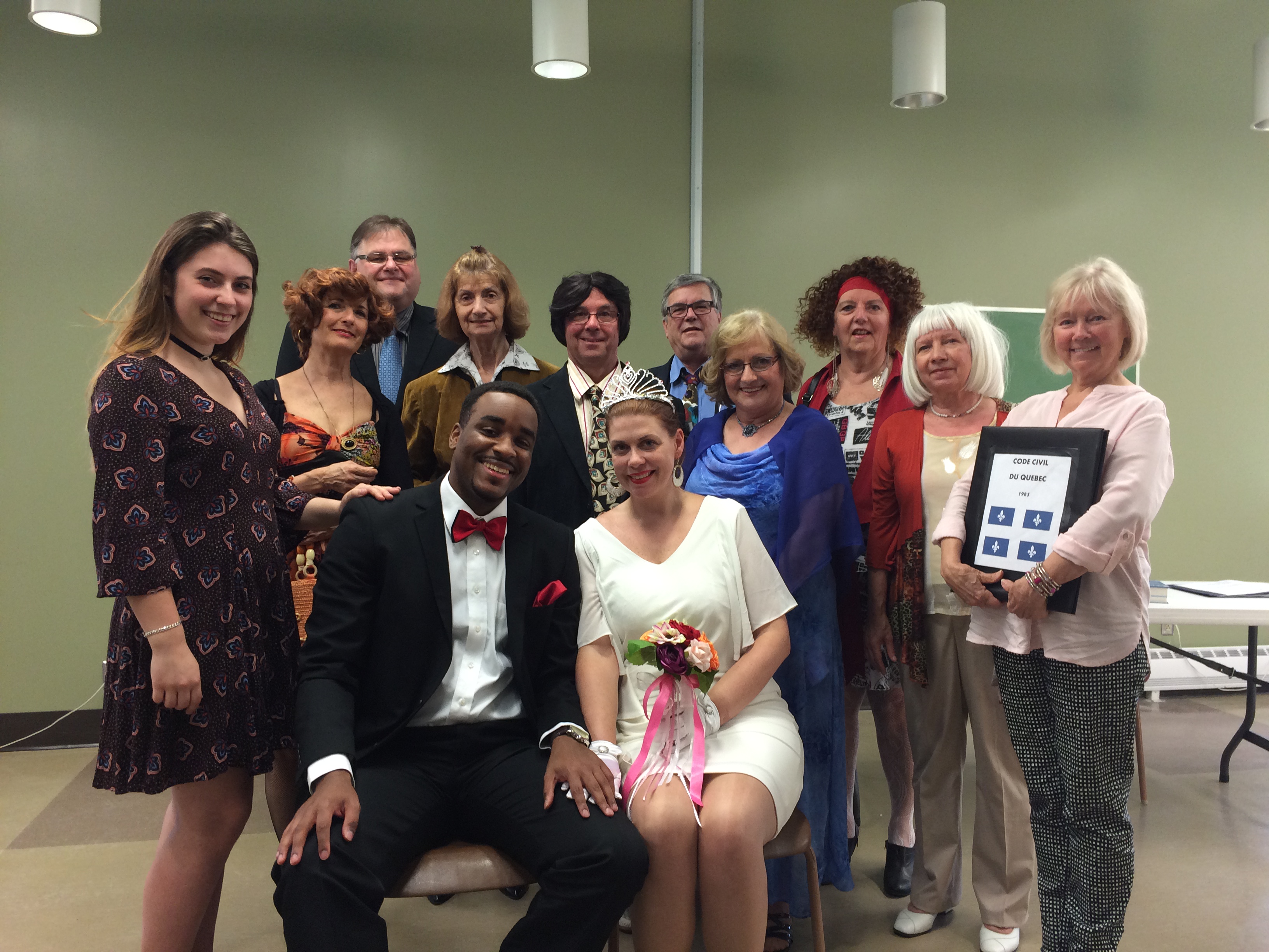 Un mariage civil entre deux divorcés qui se cachent l’un l’autre des vérités, des pans de leur vie… Une cérémonie quelque peu confuse et un banquet de noces «surprise» pour les familles des mariés… Un aboutissement qui mettra chacun face à sa réalité sous le regard de l’entourage. Une comédie dramatique fort révélatrice, un reflet d’un Québec pas si lointain. Pièce de Jean Cossette; adaptation et mise en scène de Marc Tremblay.