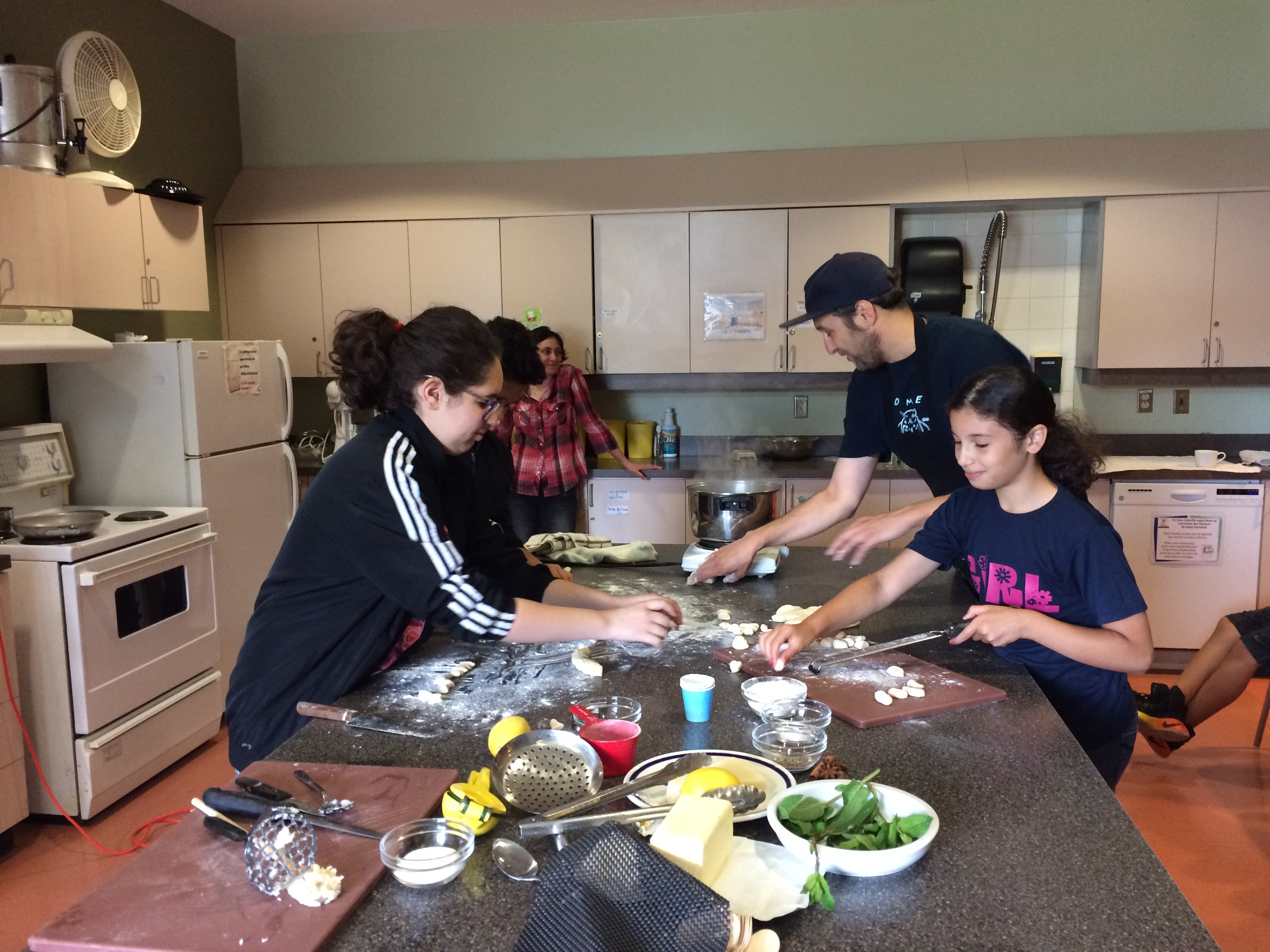 Pendant qu’il cuisinait ses deux mets, les jeunes ont dû mettre les mains à la pâte. Que ce soit pour presser des limes pour la limonade, rouler ou couper la pâte fraîche pour les gnocchis, tous ont pu montrer leur talent dans une cuisine.