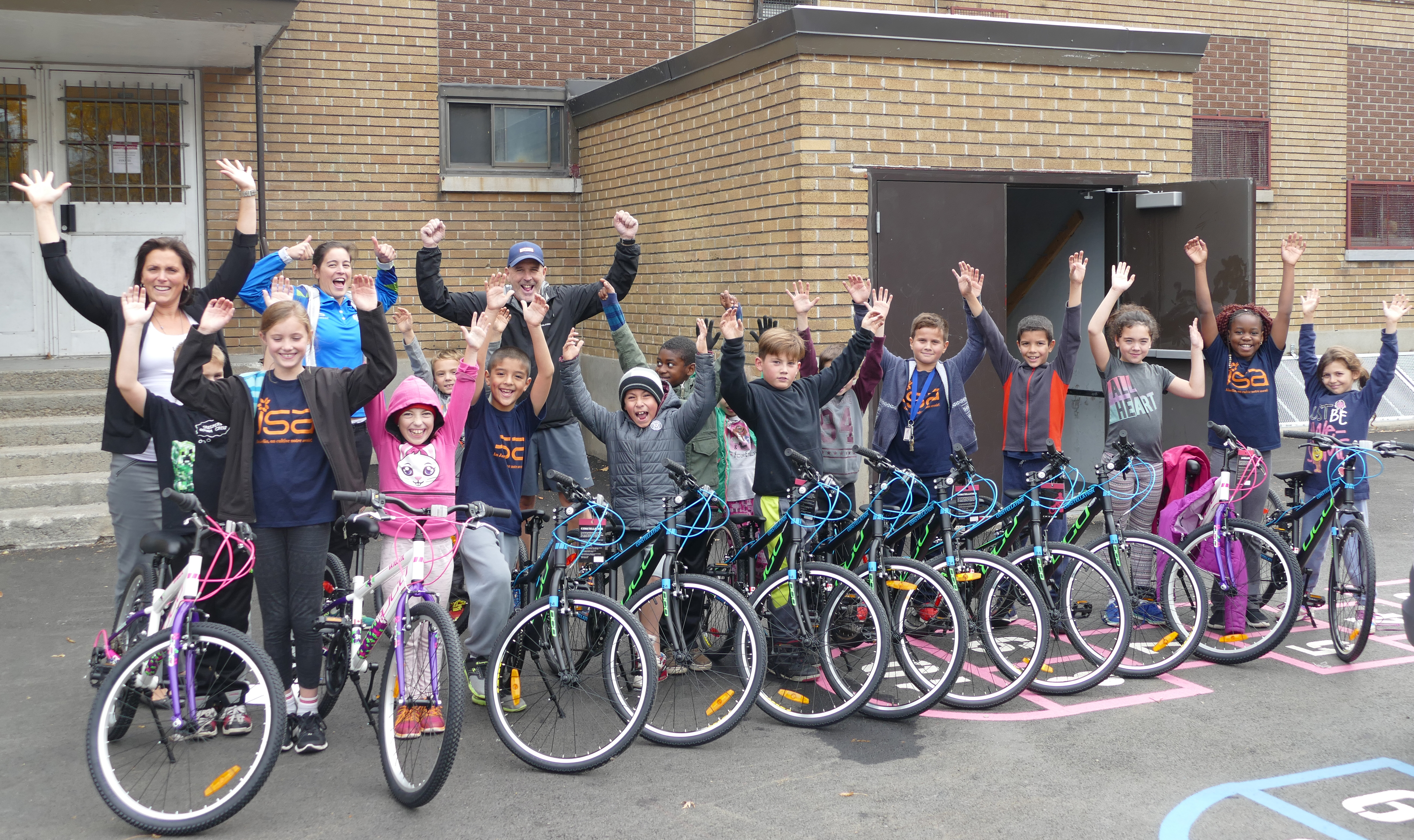 La fédération Triathlon Québec a distribué 120 bicyclettes dans 10 établissements scolaires du Québec en milieu défavorisé, dont à l’école Victor-Lavigne, à Saint-Léonard.