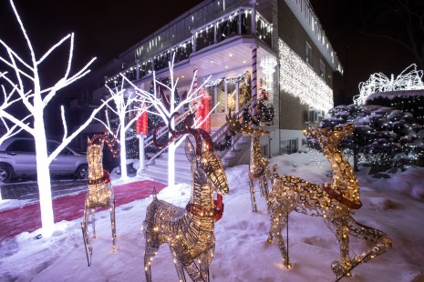 La nuit tombée, alors que la noirceur s’installe dans les rues de Saint-Léonard, la rue de Choisy brille de mille feux. Les 34 000 lumières qui décorent la maison de Mike Cecere illuminent le secteur et ne sont que quelques-unes des décorations de ce passionné de Noël.