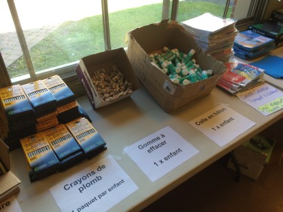 Au total, 70 familles vivant sous le seuil de faibles revenus obtiendront un coupon leur donnant une liste de fournitures scolaires comptant coffres à crayon, colle en bâton, stylos, cahiers d’écritures et autres.