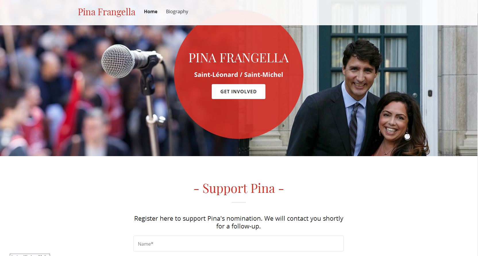 Pina Frangella, qui avoue son intérêt pour la course à la succession de Nicola Di Iorio, a fait construire un site Internet afin de susciter des appuis dans la communauté. Il devait demeurer hors ligne jusqu’à ce que ce que la candidature soit officielle. Or, la page Web rédigée en Anglais seulement s’est soudainement retrouvée accessible. Une simple recherche Google permet d’ailleurs de voir la page, toujours en ligne au moment de la publication de cet article.