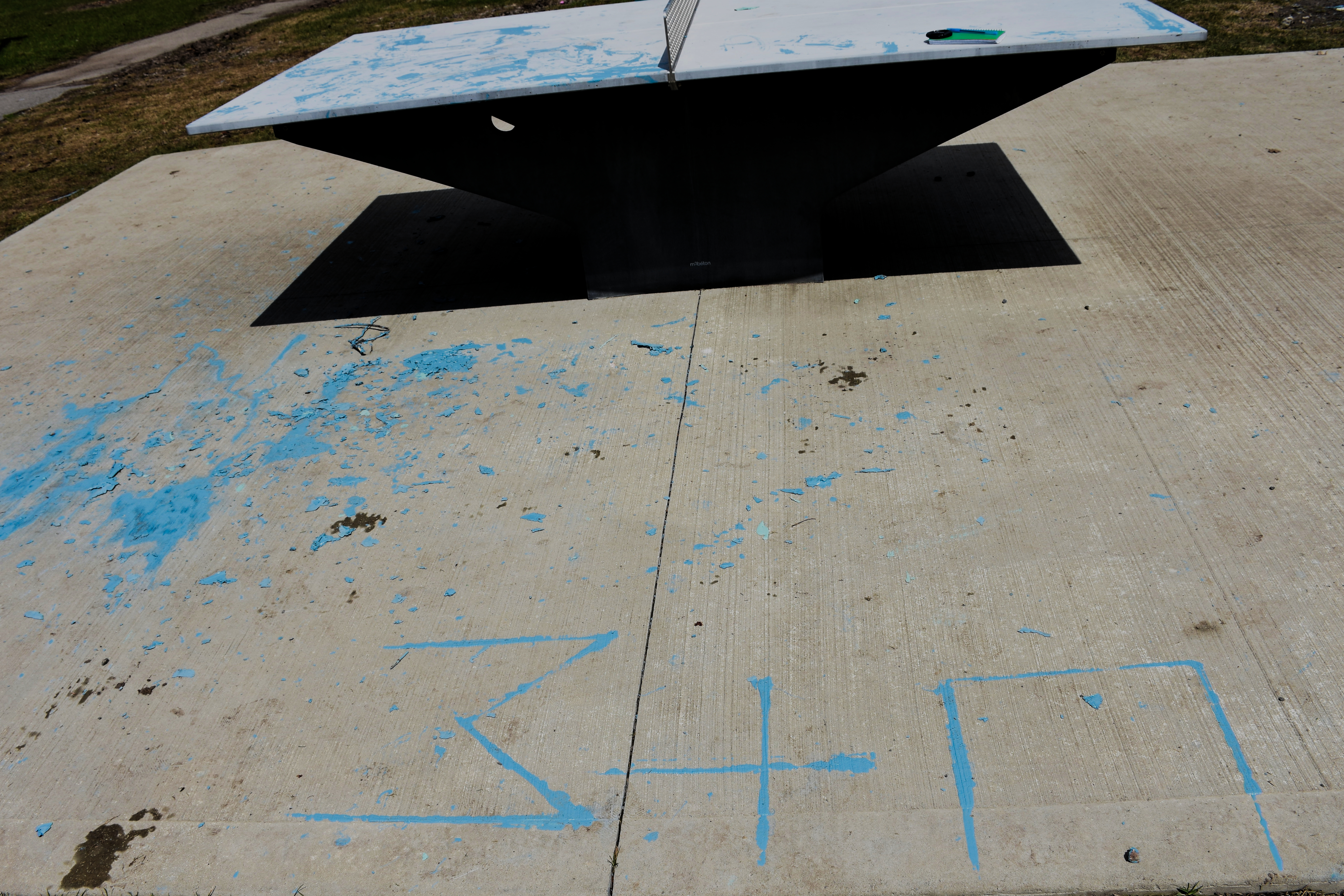 Lors de son arrivée, des roches avaient également été dispersées sur la table, s’y collant lors du séchage de la peinture. Au moment du passage du Progrès, mardi, un rapide travail de nettoyage avait déjà été effectué. Le relief de la surface de jeu restait cependant inégal, en raison des traces de peintures subsistantes. « C’est dommage, la balle ne pourra plus avoir le même rebond, pense Mme Breaullt en posant sa main sur la table. »