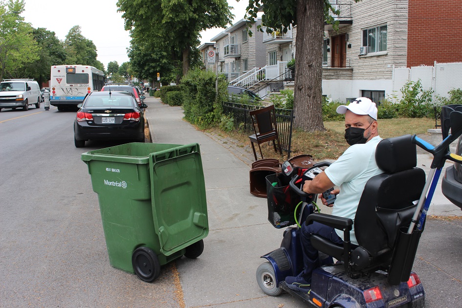 Kamal Chouari habite Saint-Léonard depuis 14 ans. Sa mobilité étant réduite, il affirme avoir de la difficulté à se déplacer en fauteuil électrique sur les trottoirs de l’arrondissement les jours de collecte des poubelles. Le temps d’un après-midi, Métro l’a accompagné pour constater les obstacles qui se dressent devant lui.
