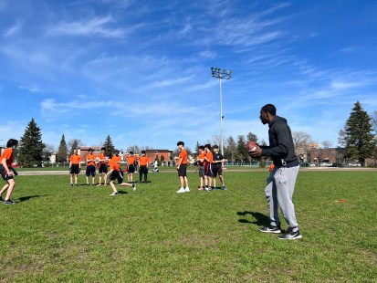 Trois joueurs des Alouettes de Montréal ont rendu visite aux équipes de football de l’école secondaire Laurier-Macdonald de Saint-Léonard, le 5 mai.