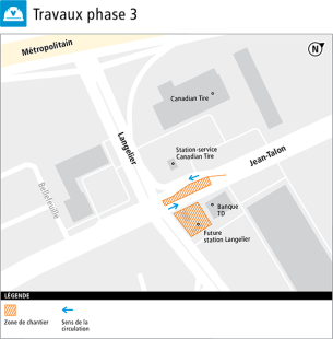 L’ultime phase, qui doit s’échelonner sur une seule semaine, permettra une circulation plus fluide, puisque la circulation sera maintenue dans une voie pour chaque direction sur la rue Jean-Talon, alors la circulation se fera librement sur le boulevard Langelier.
