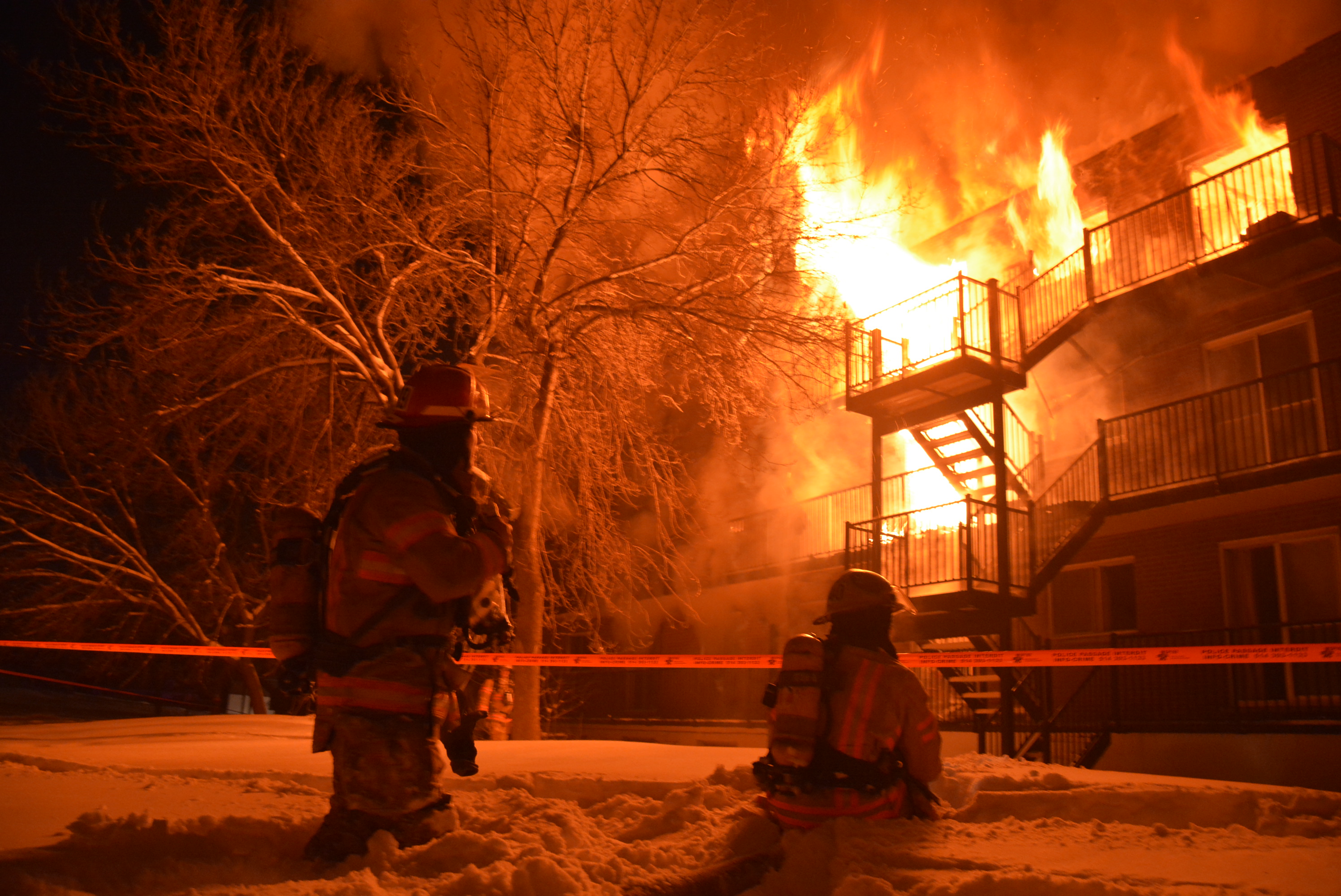 Une fois les résidents évacués, les pompiers ont quitté l’immeuble en raison de la force du brasier.