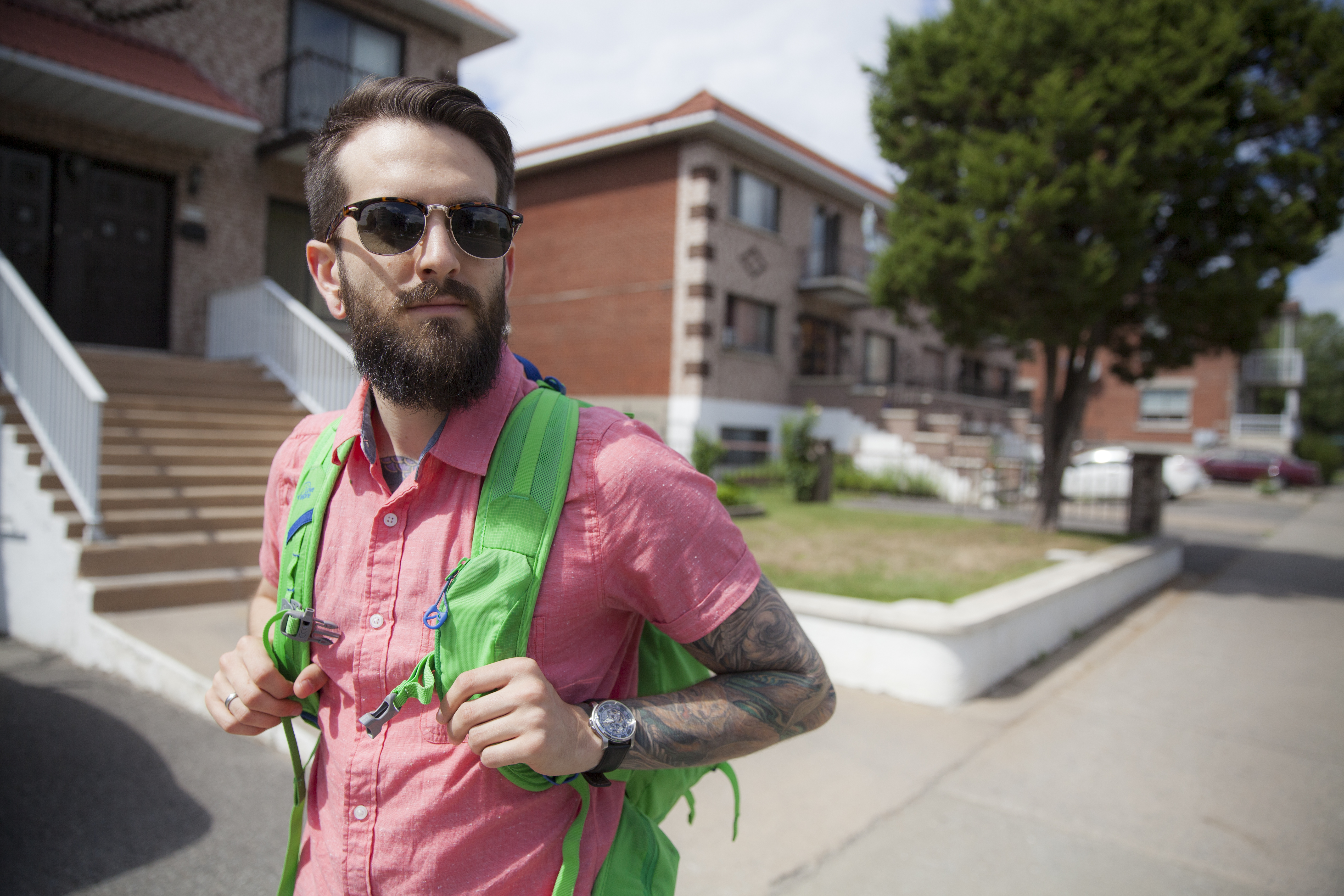Il est 13h10, au parc Wilfrid-Bastien. Sac-à-dos vert fluo, chaise de camping et imperméable à portée de main, Christophe est prêt à arpenter les chemins qui relient les parcs du quartier, qu’il connaît maintenant par cœur.