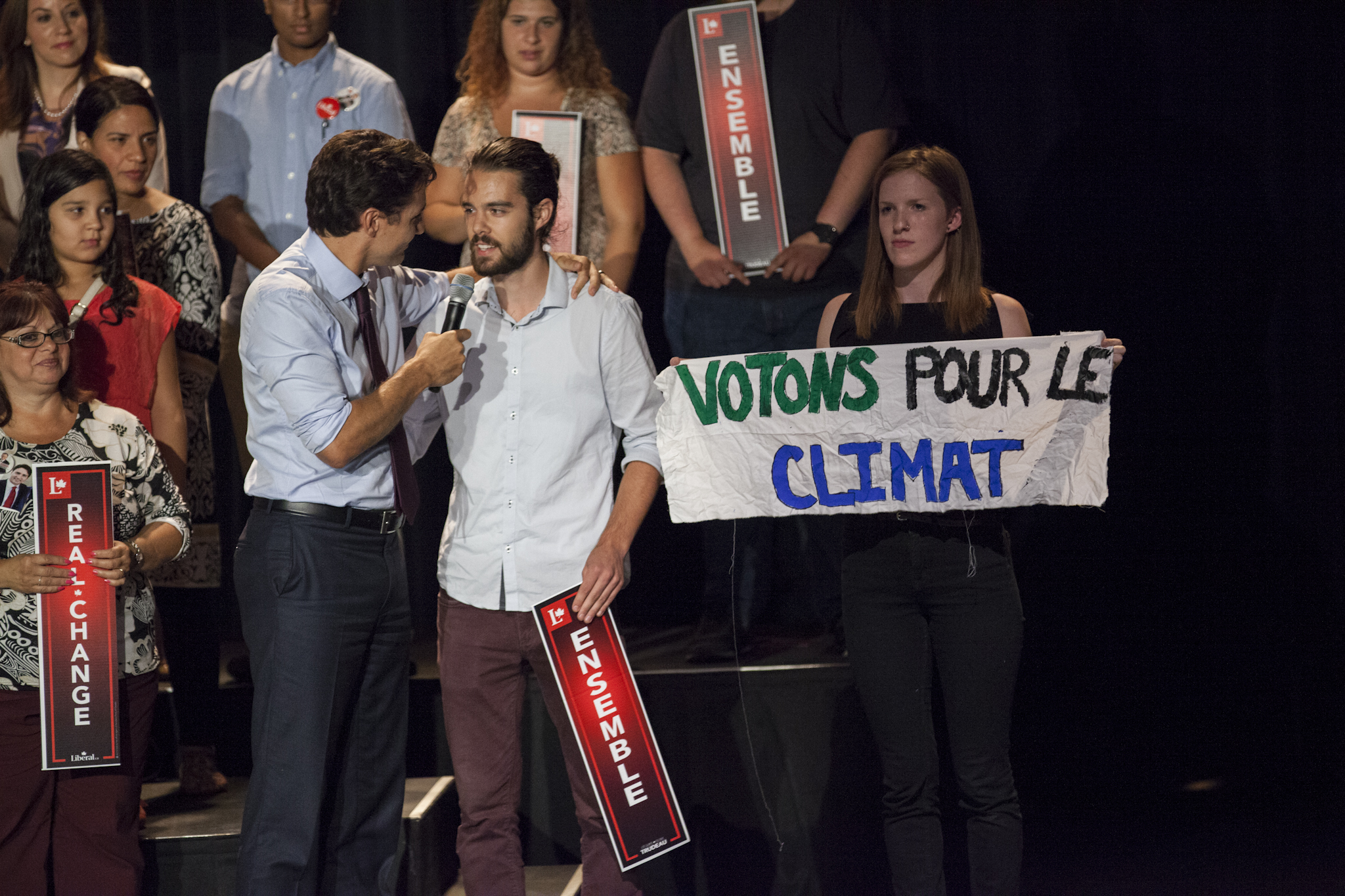 «J’aimerais connaître le plan du Canada pour la conférence des Nations unies sur les changements climatiques à Paris, qui aura lieu en décembre», a demandé le militant à l’aide du micro que lui a tendu le chef libéral.