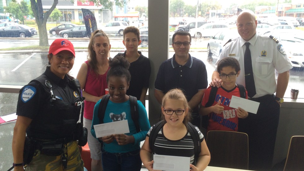 Pour une troisième année, le poste de quartier (PDQ) 42 a remis des sacs à dos neufs remplis de fournitures scolaires à des élèves d’écoles primaires de Saint-Léonard. Un total