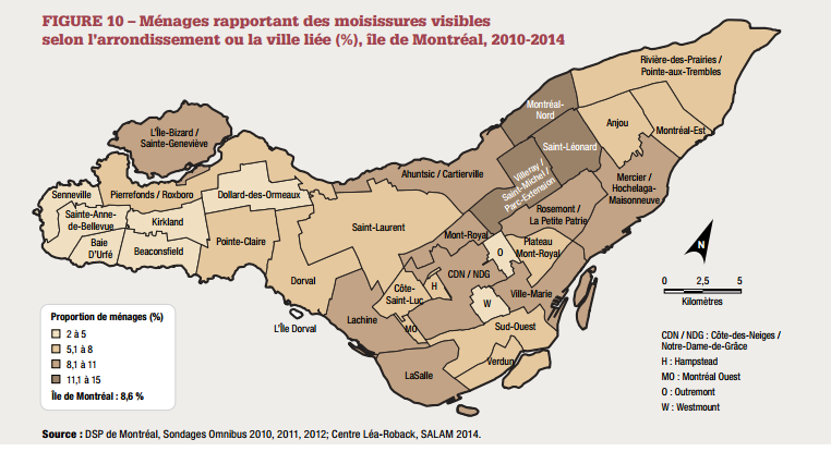 Un rapport de la Direction de la santé publique (DSP) chiffre à plus de 11 % le nombre de ménages touchés par la moisissure visible dans Saint-Léonard, plaçant l’arrondissement