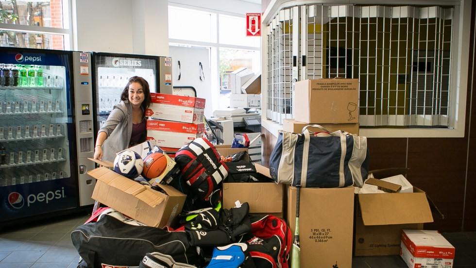 Un camion rempli d’articles sportifs gracieuseté de la CCEM